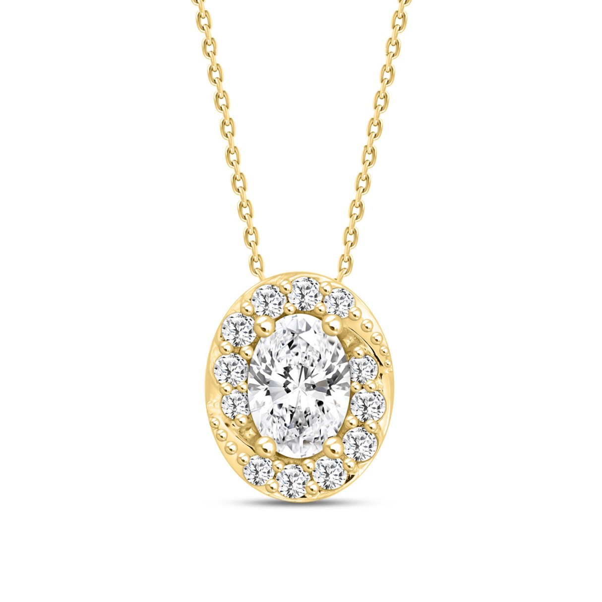 14K YELLOW GOLD 1.00CT ROUND/OVAL DIAMOND LADIES PENDANT WITH CHAIN (CENTER STONE OVAL DIAMOND 3/4CT)