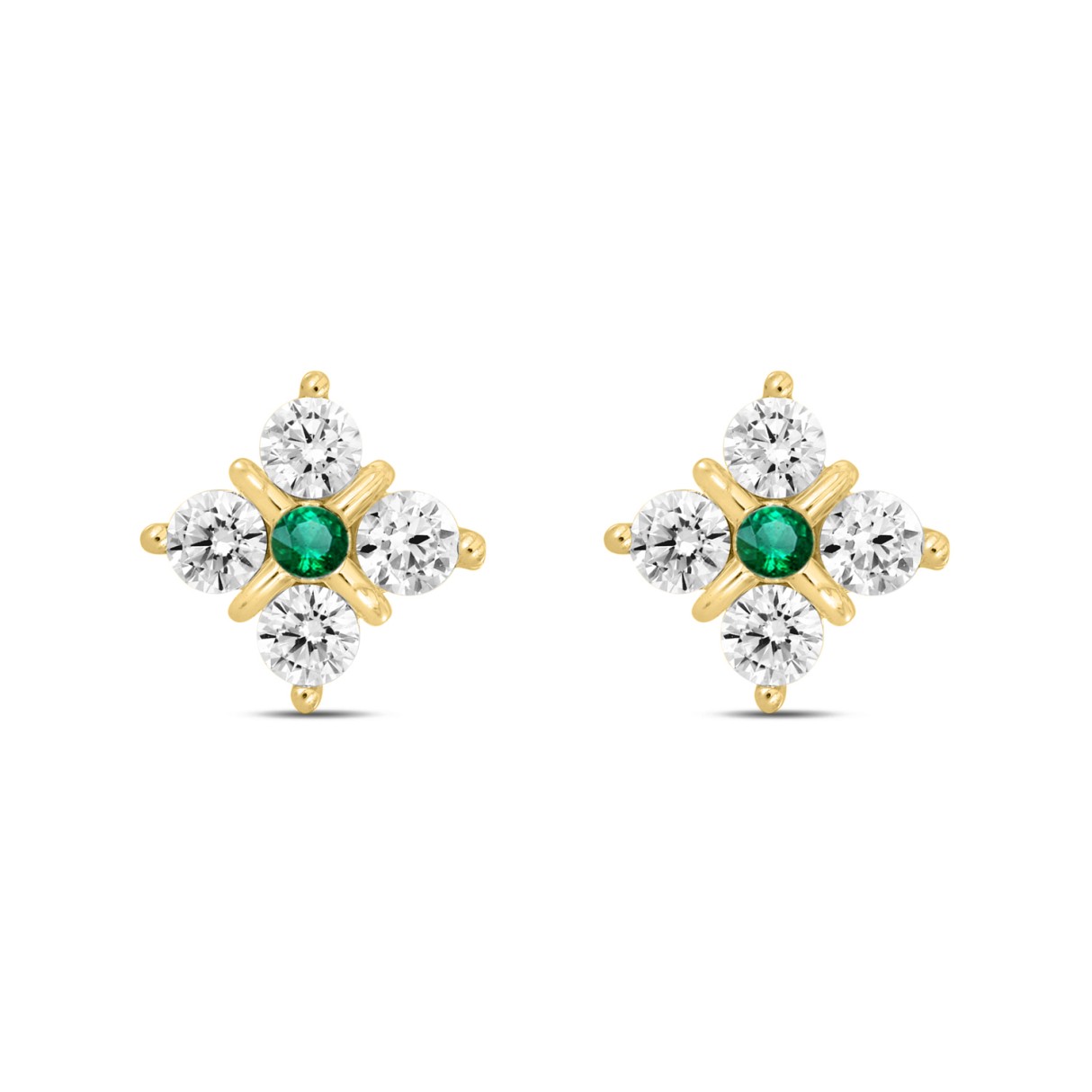 14K YELLOW GOLD 1 1/2CT ROUND DIAMOND LADIES EARRINGS (GREEN EMERALD ROUND 2 STONE)