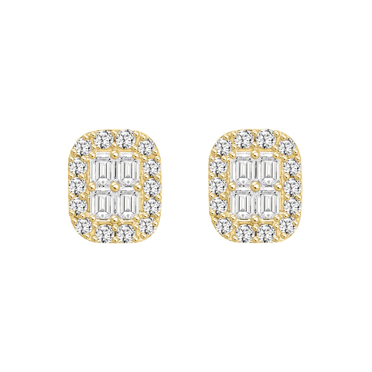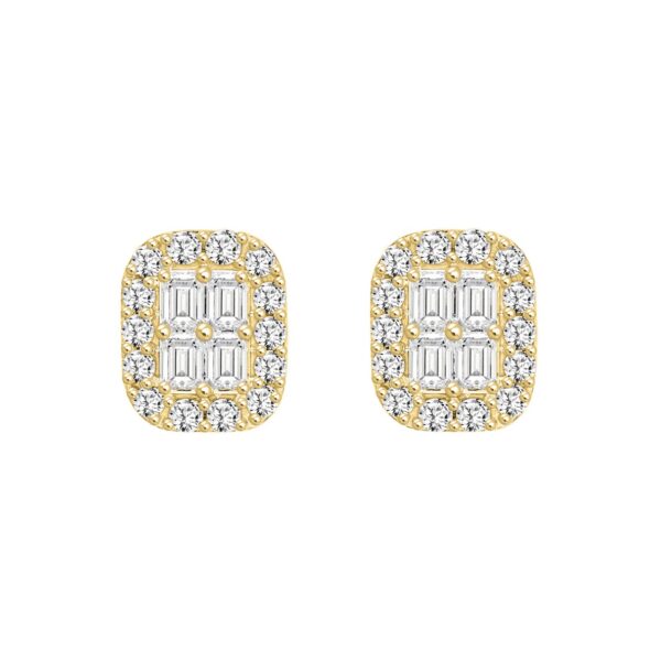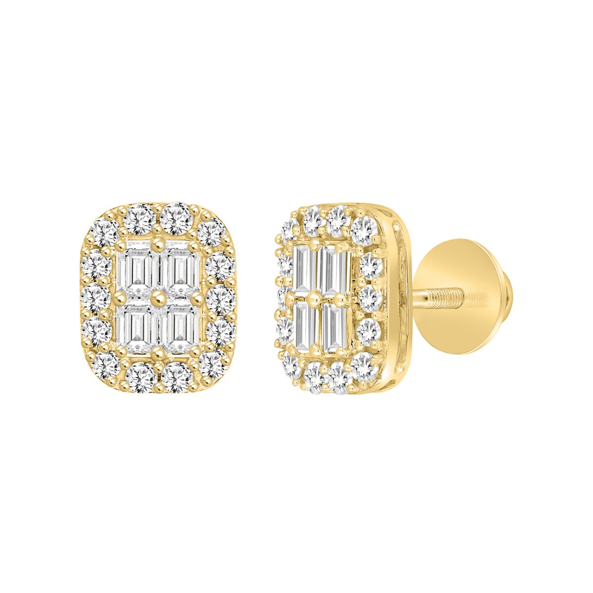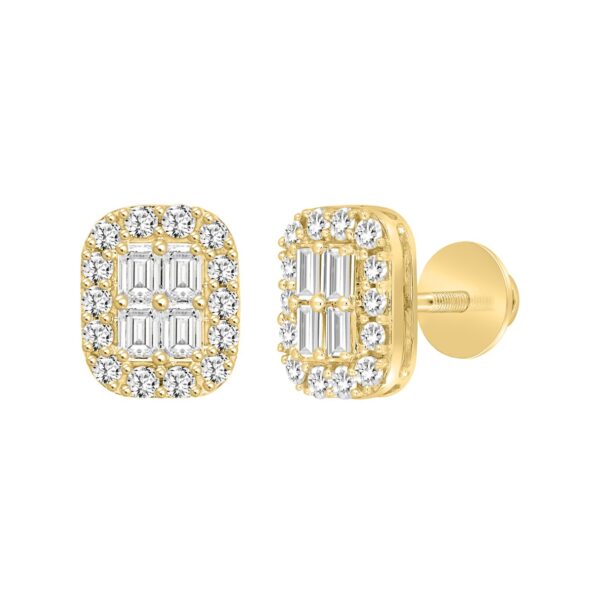14K YELLOW GOLD 1 1/2CT ROUND/EMERALD DIAMOND MEN’S EARRINGS