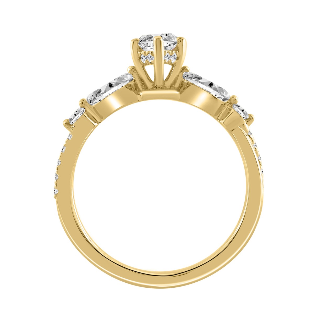 14K YELLOW GOLD 1 1/2CT ROUND/MARQUISE DIAMOND LADIES RING (CENTER STONE MARQUISE DIAMOND 1CT)