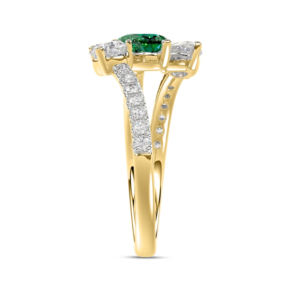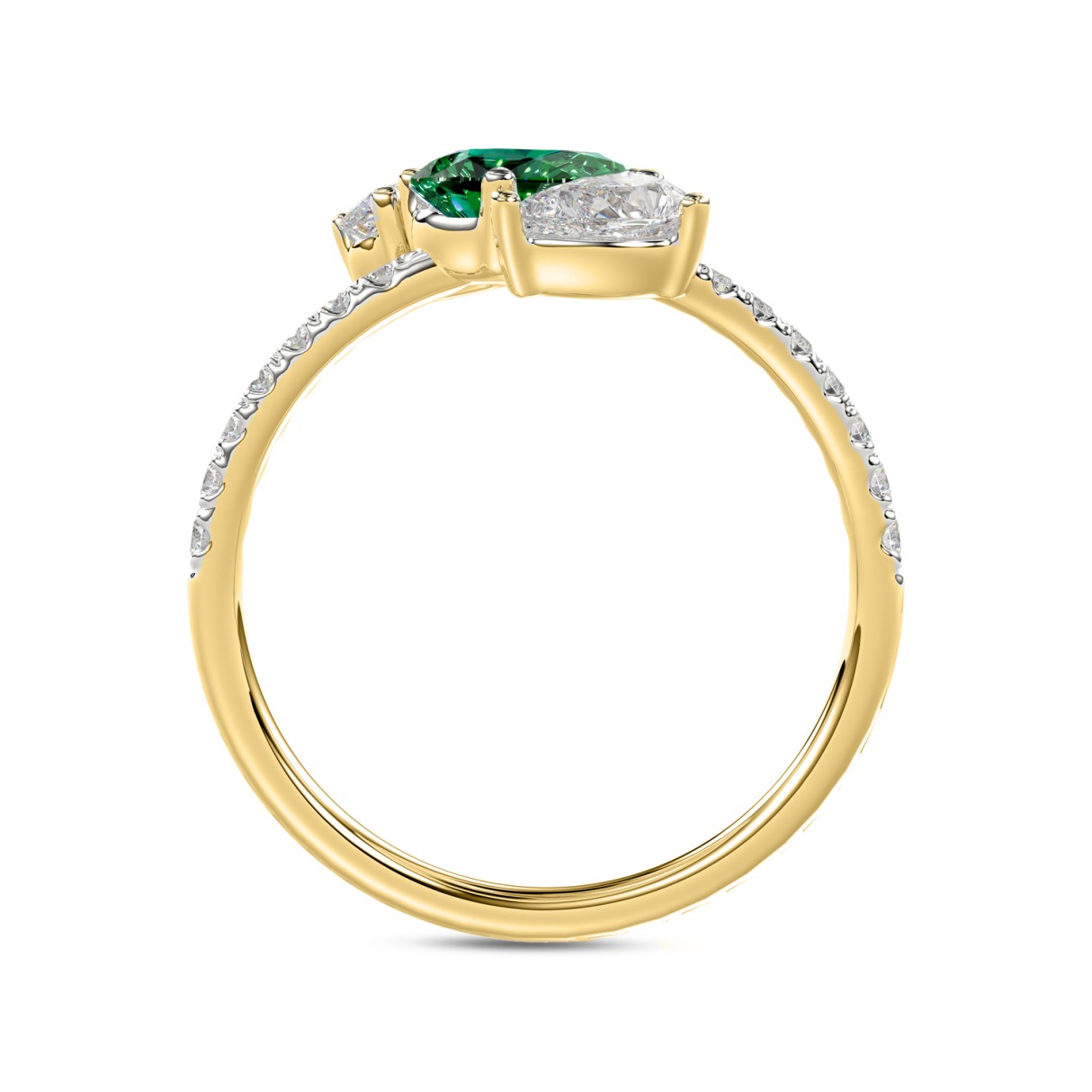 14K YELLOW GOLD 1 1/4CT ROUND/PEAR EMERALD GREEN DIAMOND LADIES RING (GREEN EMERALD PEAR1/2CT)