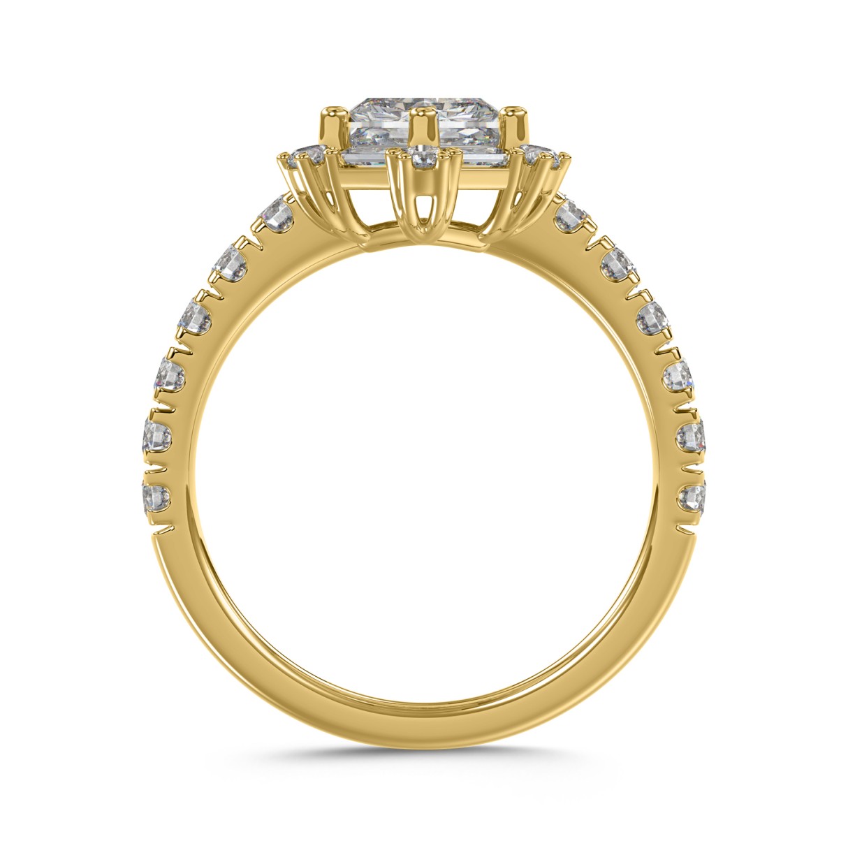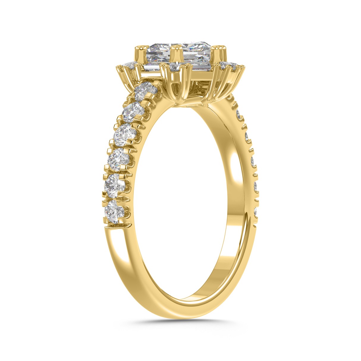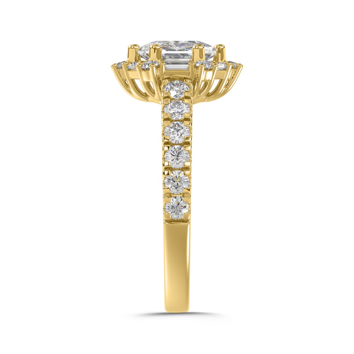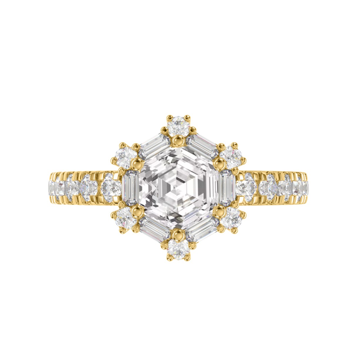 Home Rings 14K YELLOW GOLD 1 3/4CT ROUND/BAGUETTE/HEZAGON STEP CUT DIAMOND LADIES RING (CENTER STONE HEZAGON DIAMOND 1CT)