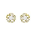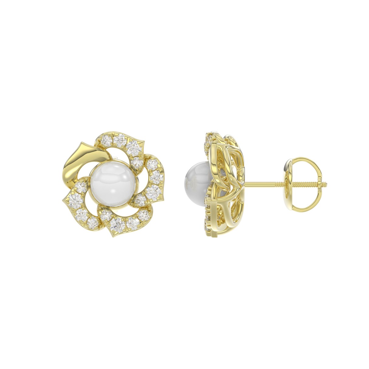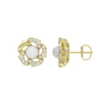14K YELLOW GOLD 1/4CT ROUND/PEARL DIAMOND LADIES EARRINGS