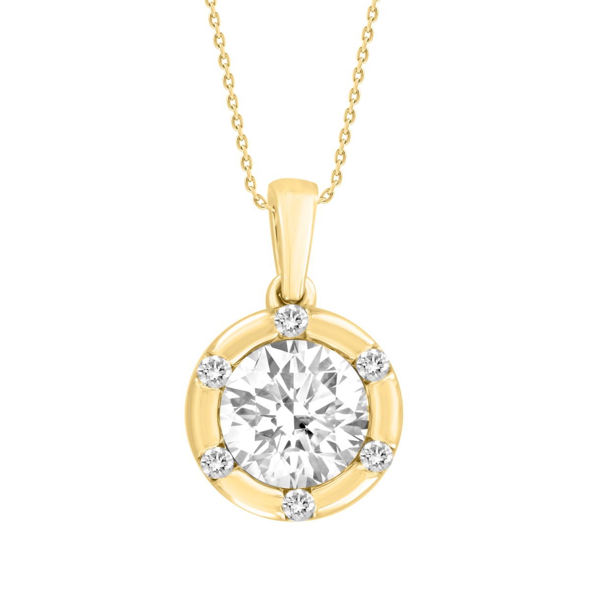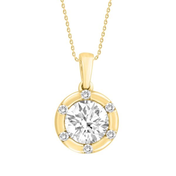 14K YELLOW GOLD 1CT ROUND DIAMOND LADIES PENDANT WITH CHAIN