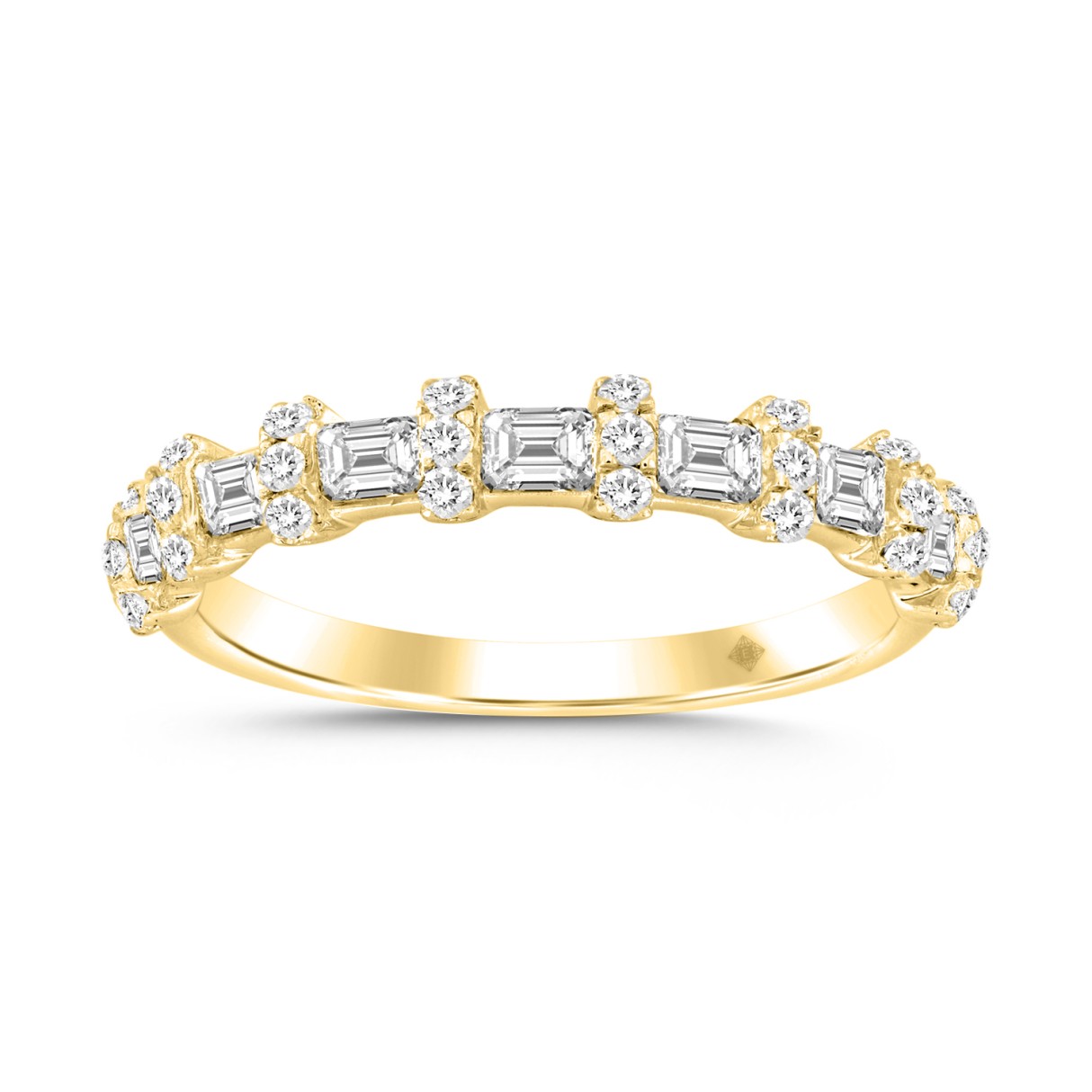 14K YELLOW GOLD 1CT ROUND/EMERALD DIAMOND LADIES BAND