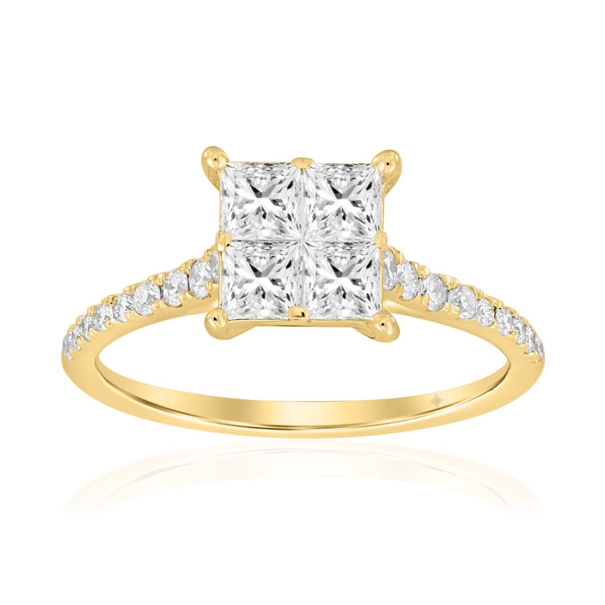 14K YELLOW GOLD 1CT ROUND/PRINCESS DIAMOND LADIES RING