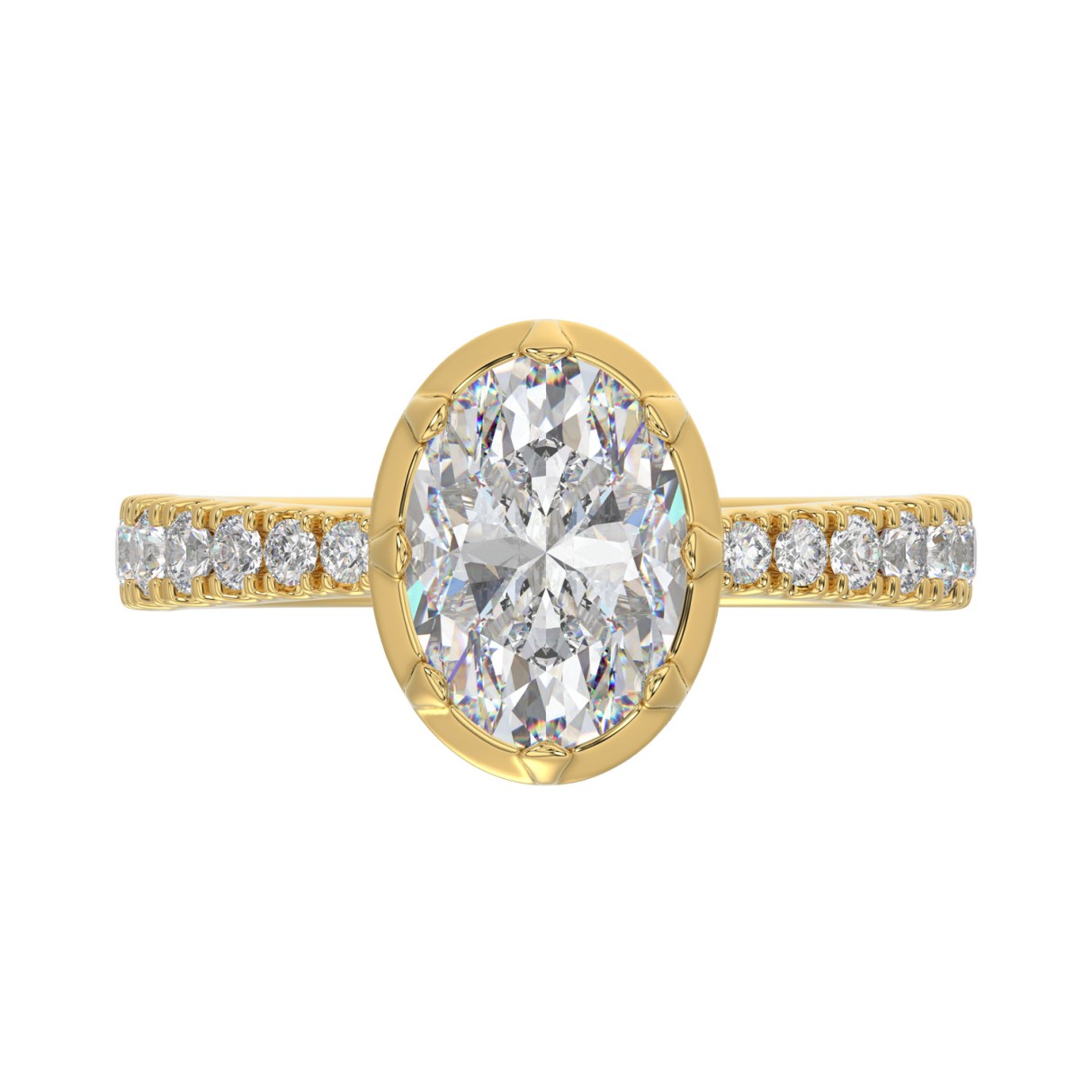 14K YELLOW GOLD 2 1/2CT ROUND/OVAL DIAMOND LADIES RING (CENTER STONE OVAL DIAMOND 2CT)