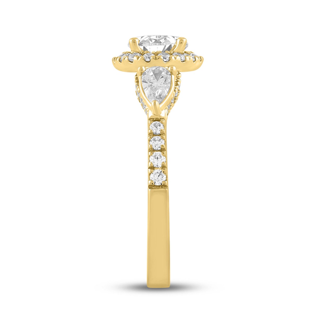14K YELLOW GOLD 2 1/2CT ROUND/OVAL/PEAR DIAMOND LADIES RING (CENTER STONE OVAL DIAMOND 1 1/2CT)