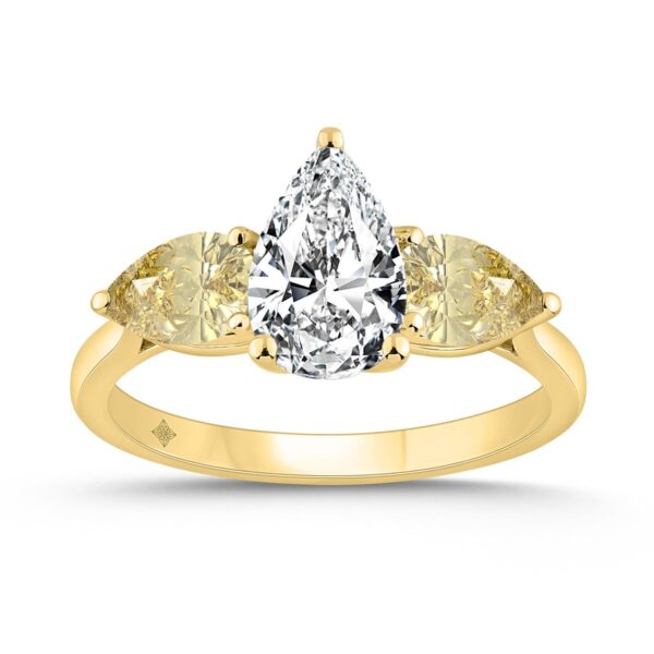 14K YELLOW GOLD 2 1/4CT YELLOW PEAR DIAMOND LADIES RING (CENTER STONE PEAR DIAMOND 1 1/5CT)