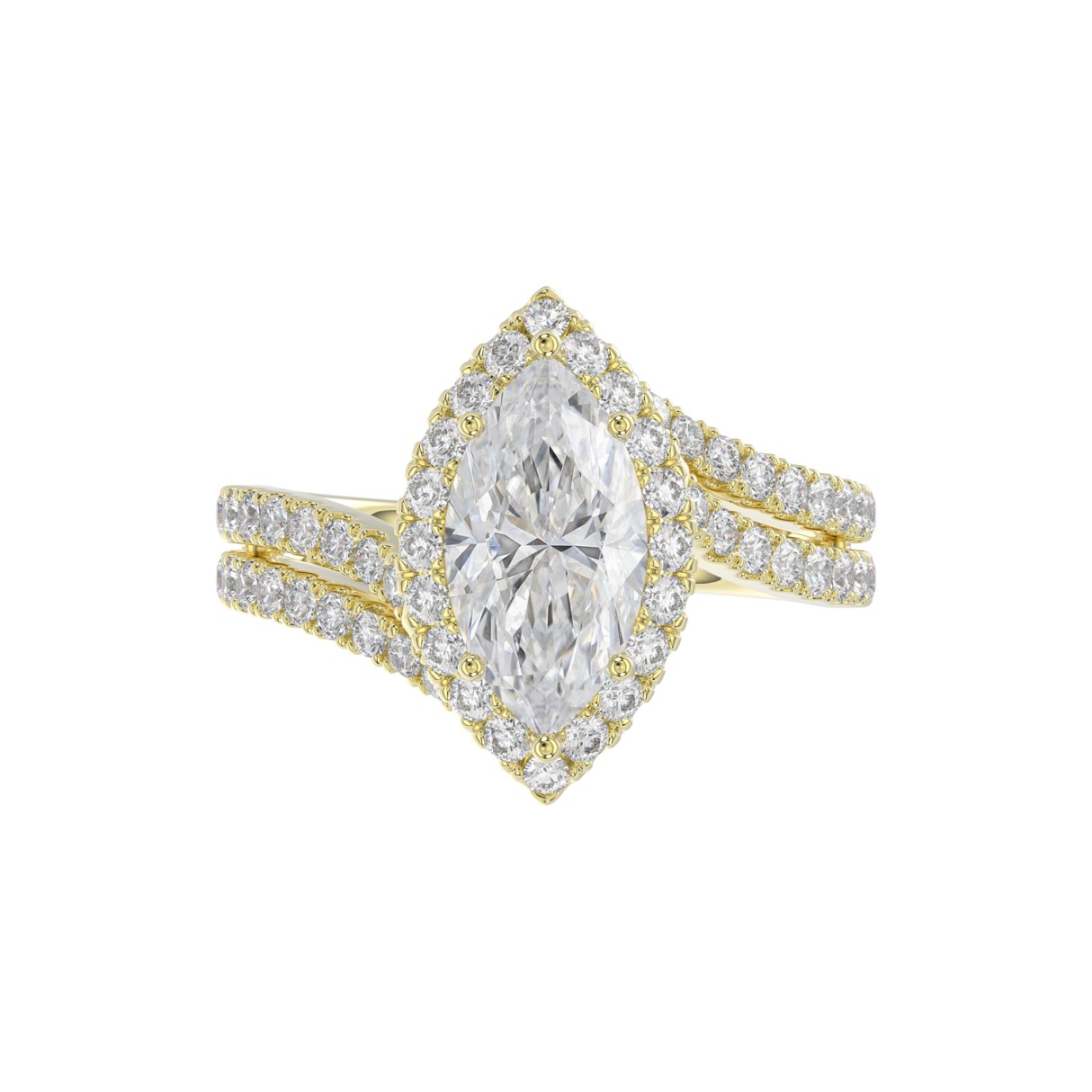 14K YELLOW GOLD 2 3/4CT ROUND/MARQUISE DIAMOND LADIES RING (CENTER STONE MARQUISE DIAMOND 2CT)