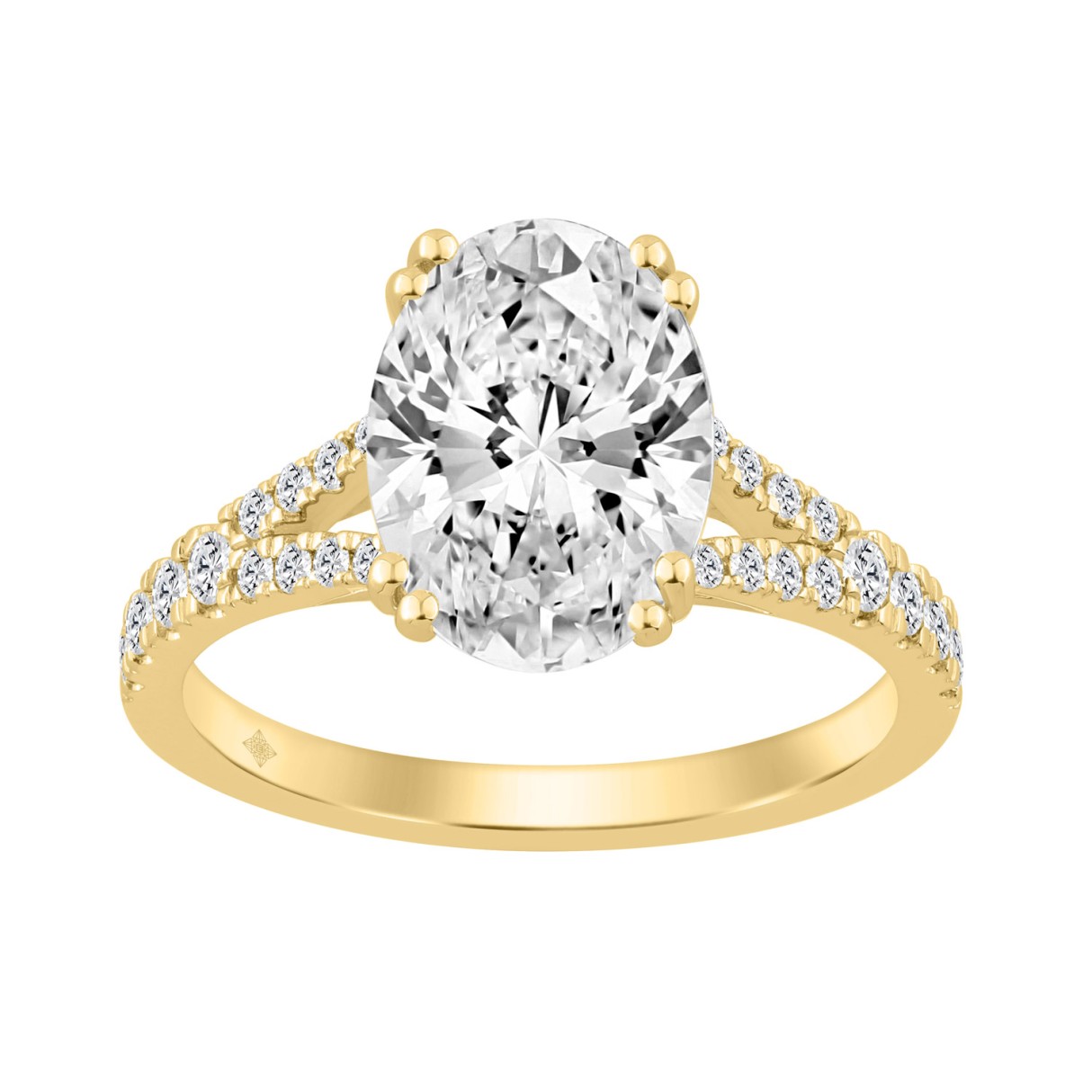 Home Rings 14K YELLOW GOLD 2 3/4CT ROUND/OVAL DIAMOND LADIES BRIDAL RING (CENTER STONE OVAL DIAMOND 2 1/2CT)