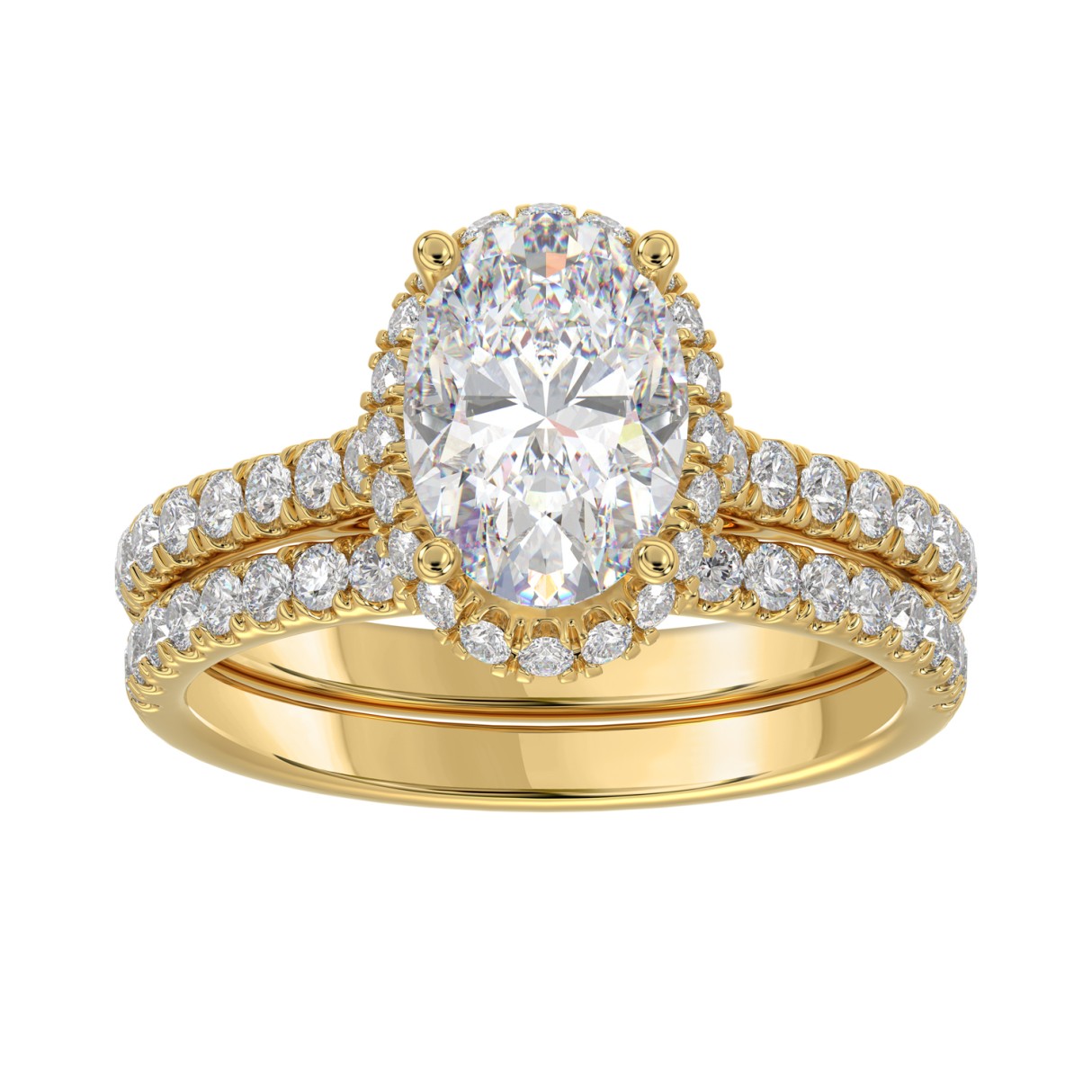 Home Rings 14K YELLOW GOLD 2 3/4CT ROUND/OVAL DIAMOND LADIES BRIDAL RING (CENTER STONE OVAL DIAMOND 2CT)