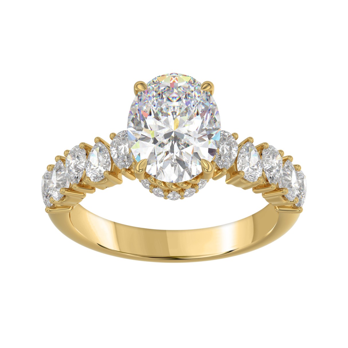 Home Rings 14K YELLOW GOLD 2 3/4CT ROUND/OVAL/PEAR DIAMOND LADIES RING (CENTER STONE OVAL DIAMOND 2CT)