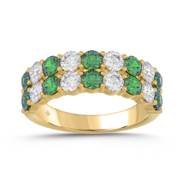 14K YELLOW GOLD 2 3/8CT ROUND/GREEN EMERALD ROUND DIAMOND LADIES BAND