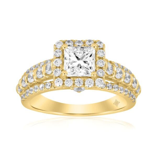 14K YELLOW GOLD 2CT ROUND/PRINCESS DIAMOND LADIES RING (CENTER STONE PRINCESS DIAMOND 1CT )