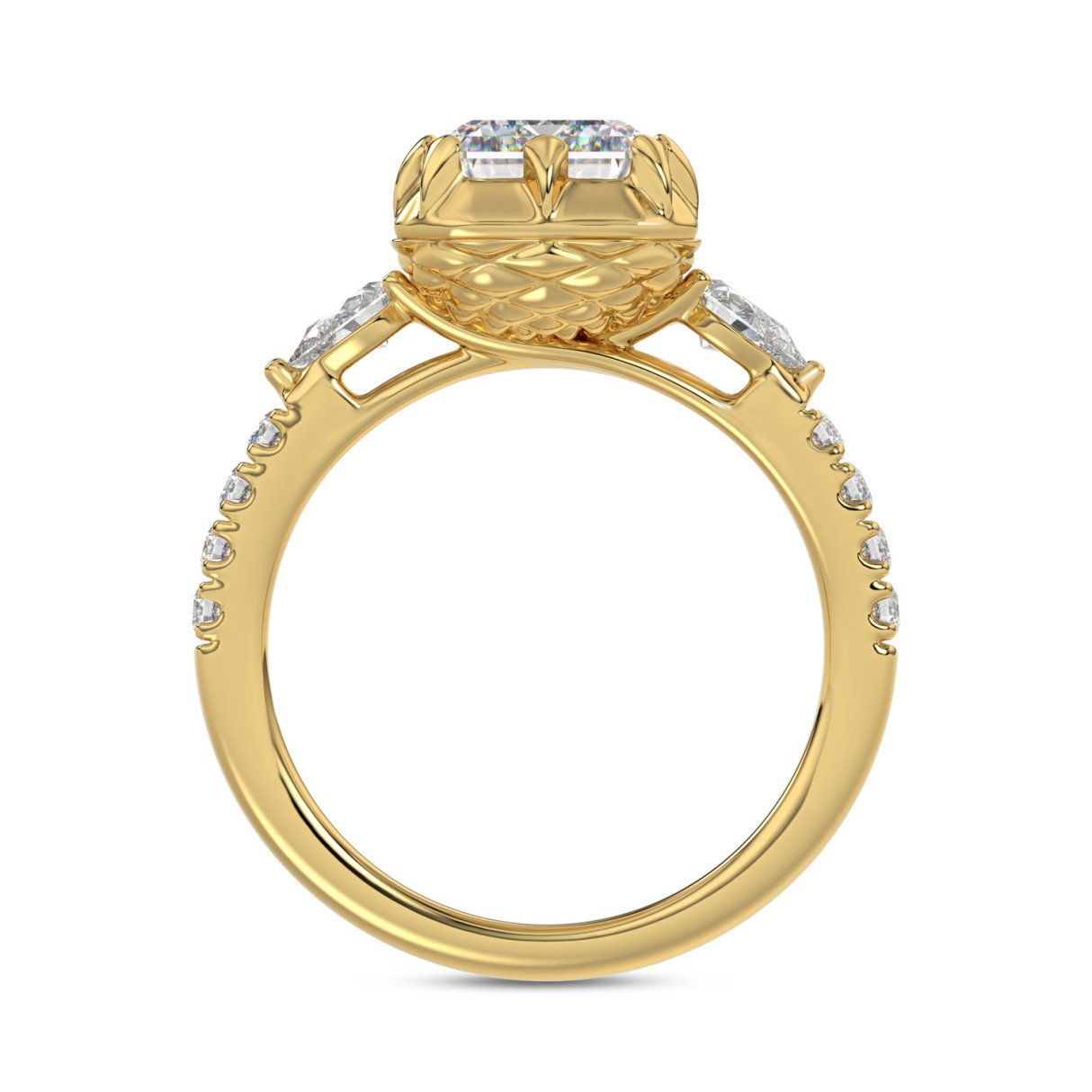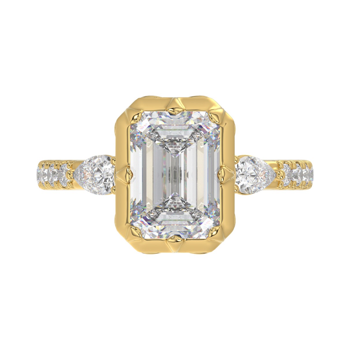 Home Rings 14K YELLOW GOLD 3 1/2CT ROUND/PEAR/EMERALD DIAMOND LADIES RING (CENTER STONE EMERALD DIAMOND 3CT)