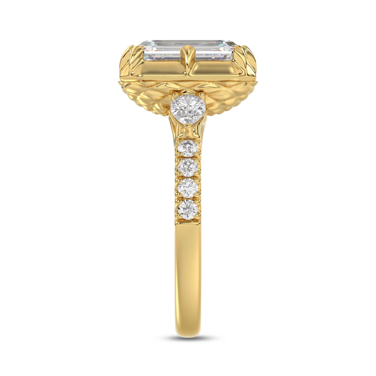 14K YELLOW GOLD 3 1/2CT ROUND/PEAR/EMERALD DIAMOND LADIES RING (CENTER STONE EMERALD DIAMOND 3CT)