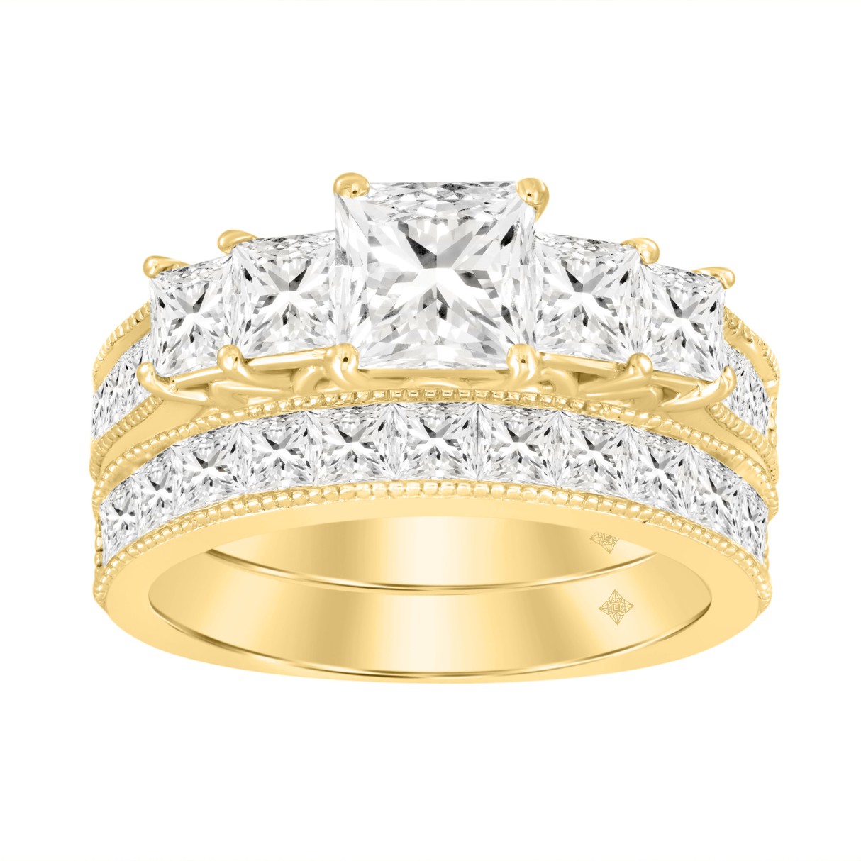 Home Rings 14K YELLOW GOLD 3 1/2CT ROUND/PRINCESS DIAMOND LADIES BRIDAL SET (CENTER STONE PRINCESS DIAMOND 3/4CT )