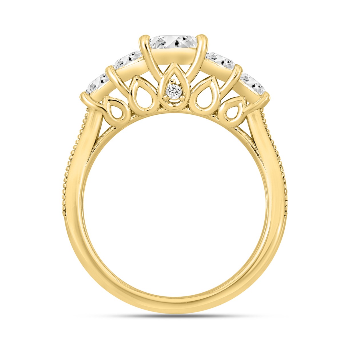 14K YELLOW GOLD 3 1/2CT ROUND/PEAR/EMERALD DIAMOND LADIES RING (CENTER STONE EMERALD DIAMOND 3CT)