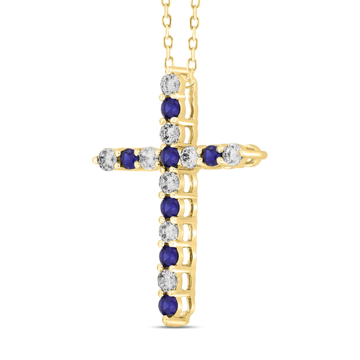 14K YELLOW GOLD 3/4CT ROUND DIAMOND LADIES PENDANT (BLUE SAPPHIRE ROUND DIAMOND 3/8CT)