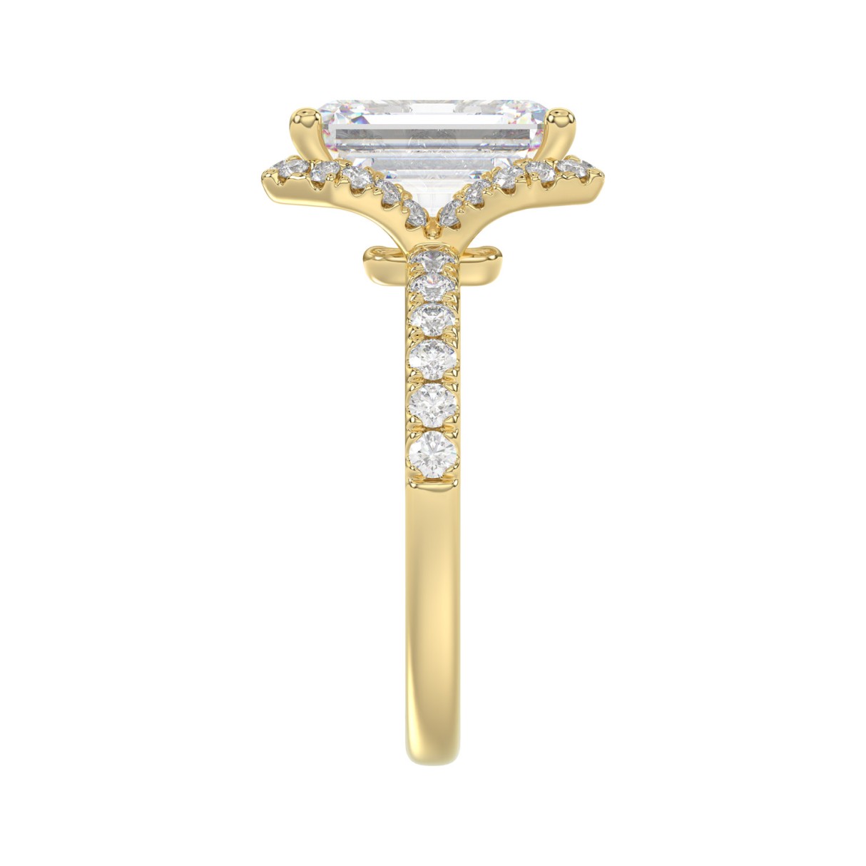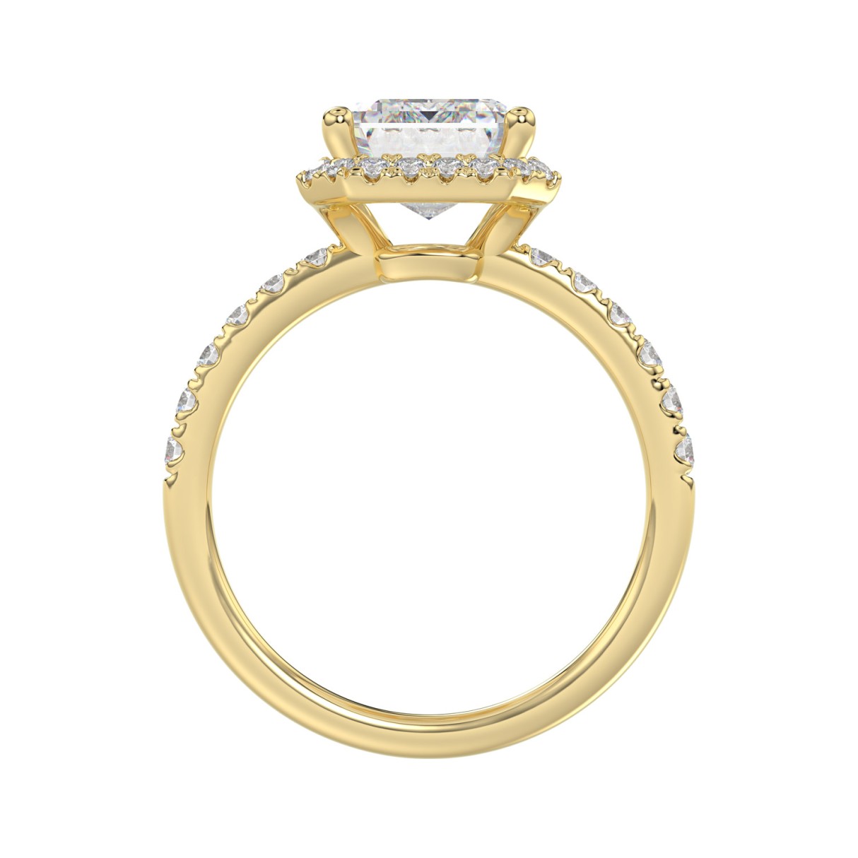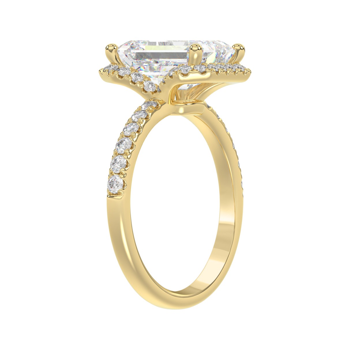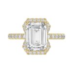 14K Yellow Gold 4 1/2CT ladies Round & Emerald-cut diamond halo engagement Ring 4.00CT Emerald Center stone (Color F-G -Clarity VS1/VS2)