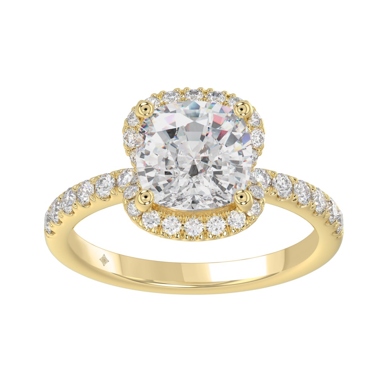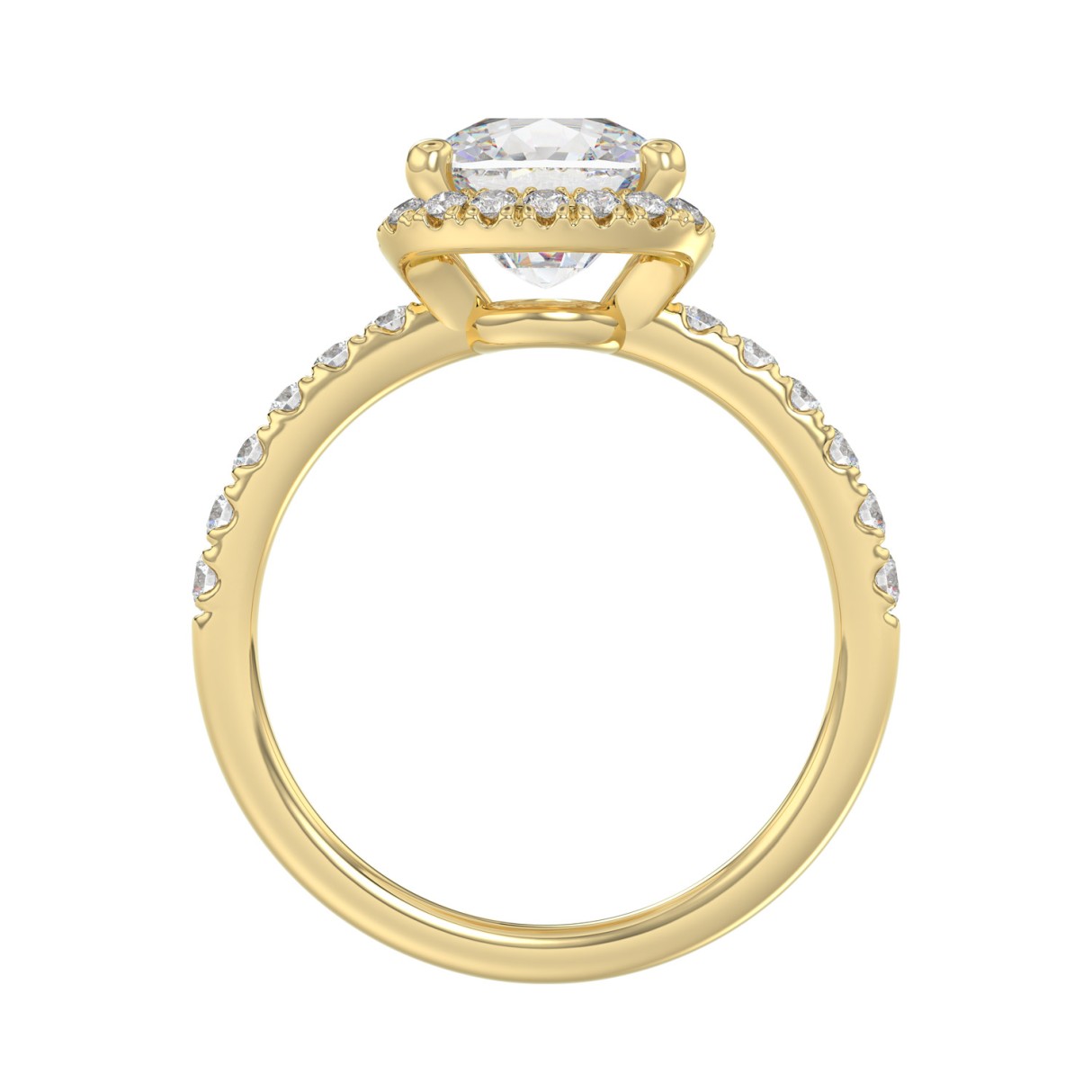 14K YELLOW GOLD 4 1/2CT ROUND/CUSHION DIAMOND LADIES RING (CENTER STONE CUSHION DIAMOND 4CT & Color F-G Clarity VS1/VS2)