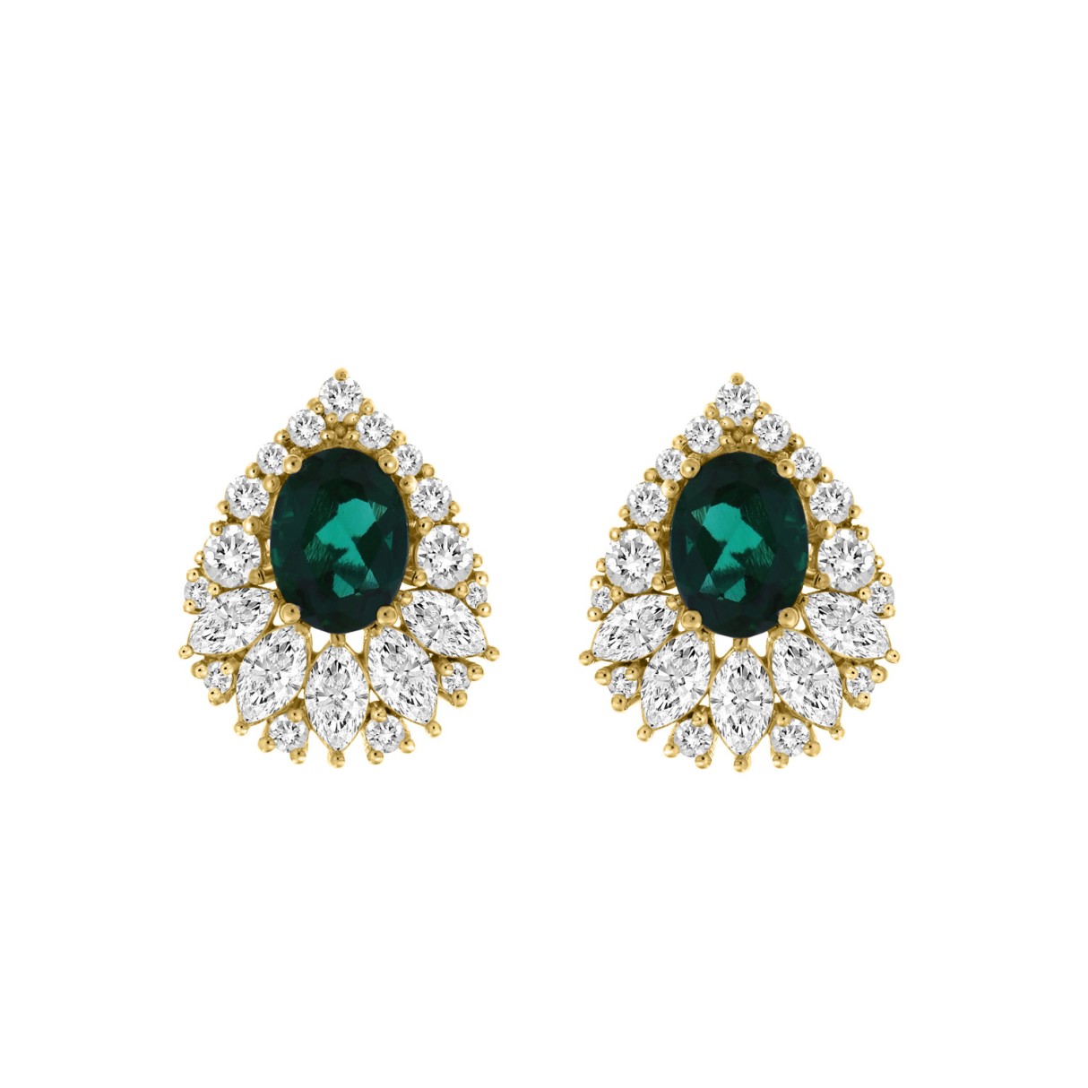 14K YELLOW GOLD 4 1/2CT ROUND/MARQUISE/OVAL DIAMOND LADIES EARRINGS (CENTER STONE GREEN EMERALD OVAL DIAMOND 2 1/2CT)