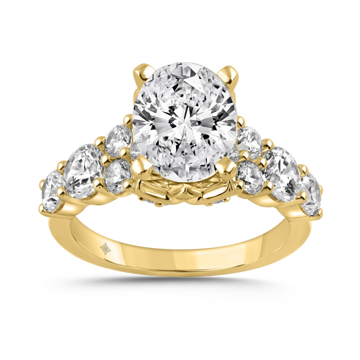Home Rings 14K YELLOW GOLD 4 1/2CT ROUND/OVAL DIAMOND LADIES RING (CENTER STONE OVAL DIAMOND 3CT)