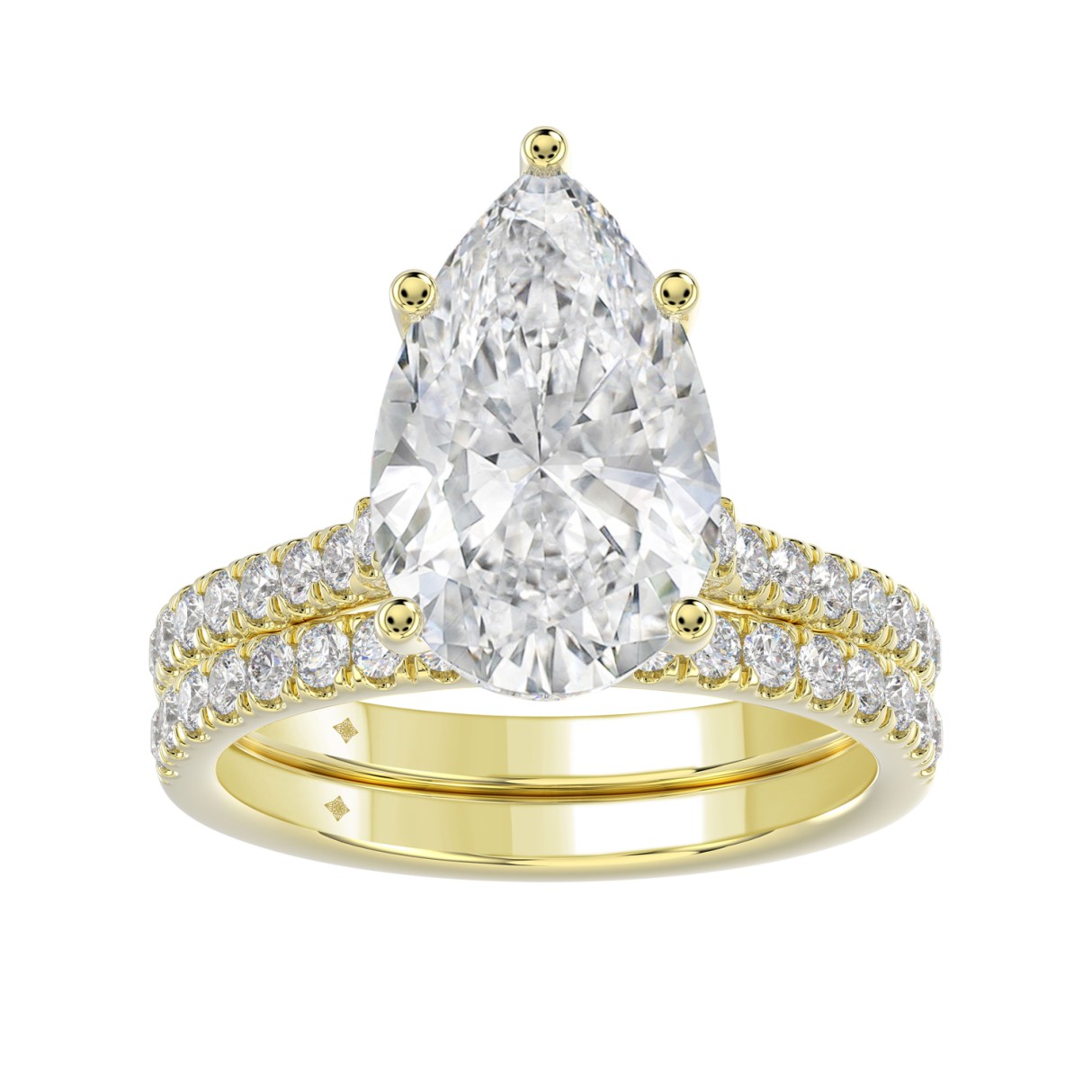 14K YELLOW GOLD 4 1/2CT ROUND/PEAR DIAMOND LADIES BRIDAL SET (CENTER STONE PEAR DIAMOND 4CT)