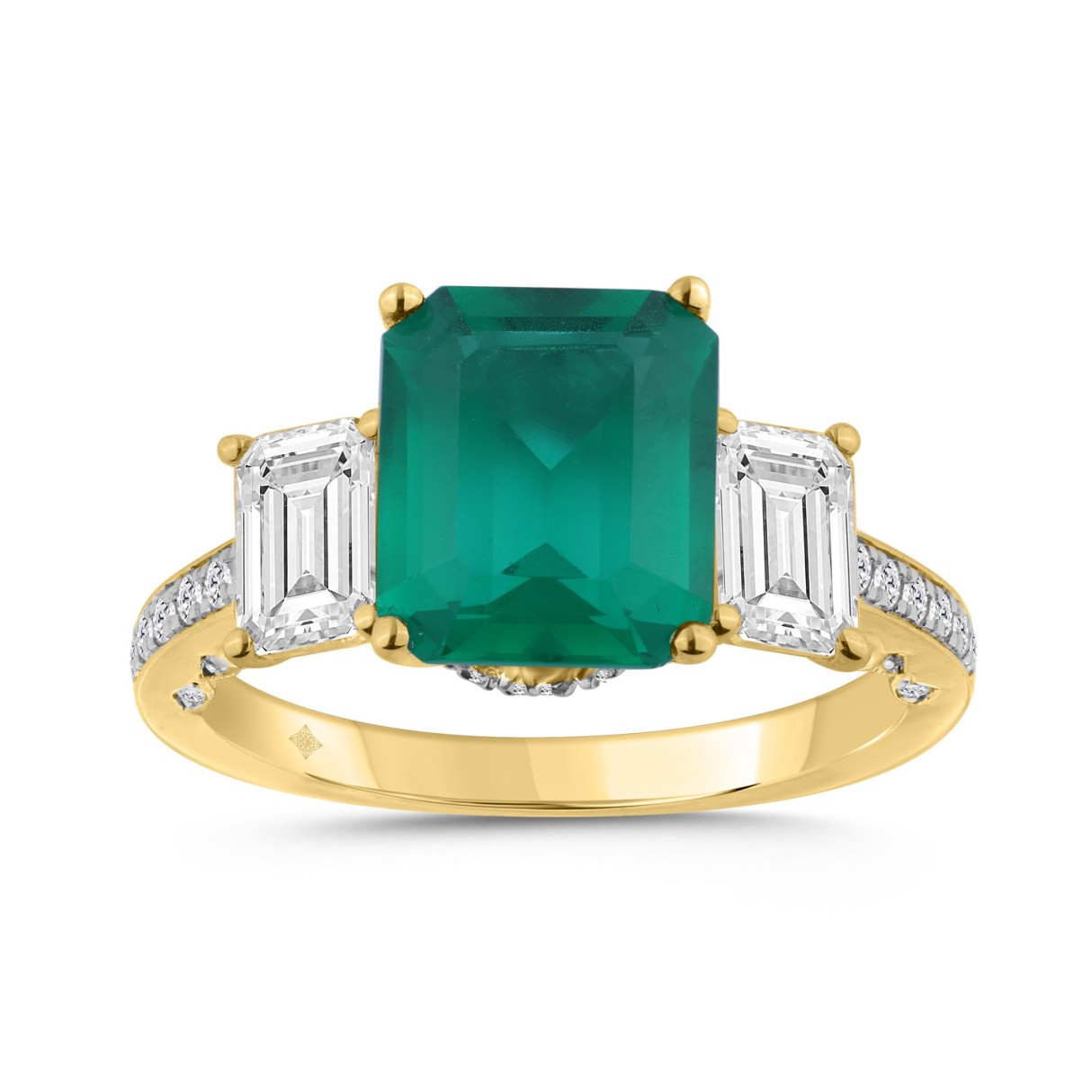 Home Rings 14K YELLOW GOLD 6 1/4CT ROUND/GREEN EMERALD DIAMOND LADIES RING (CENTER STONE GREEN EMERALD DIAMOND 5CT)