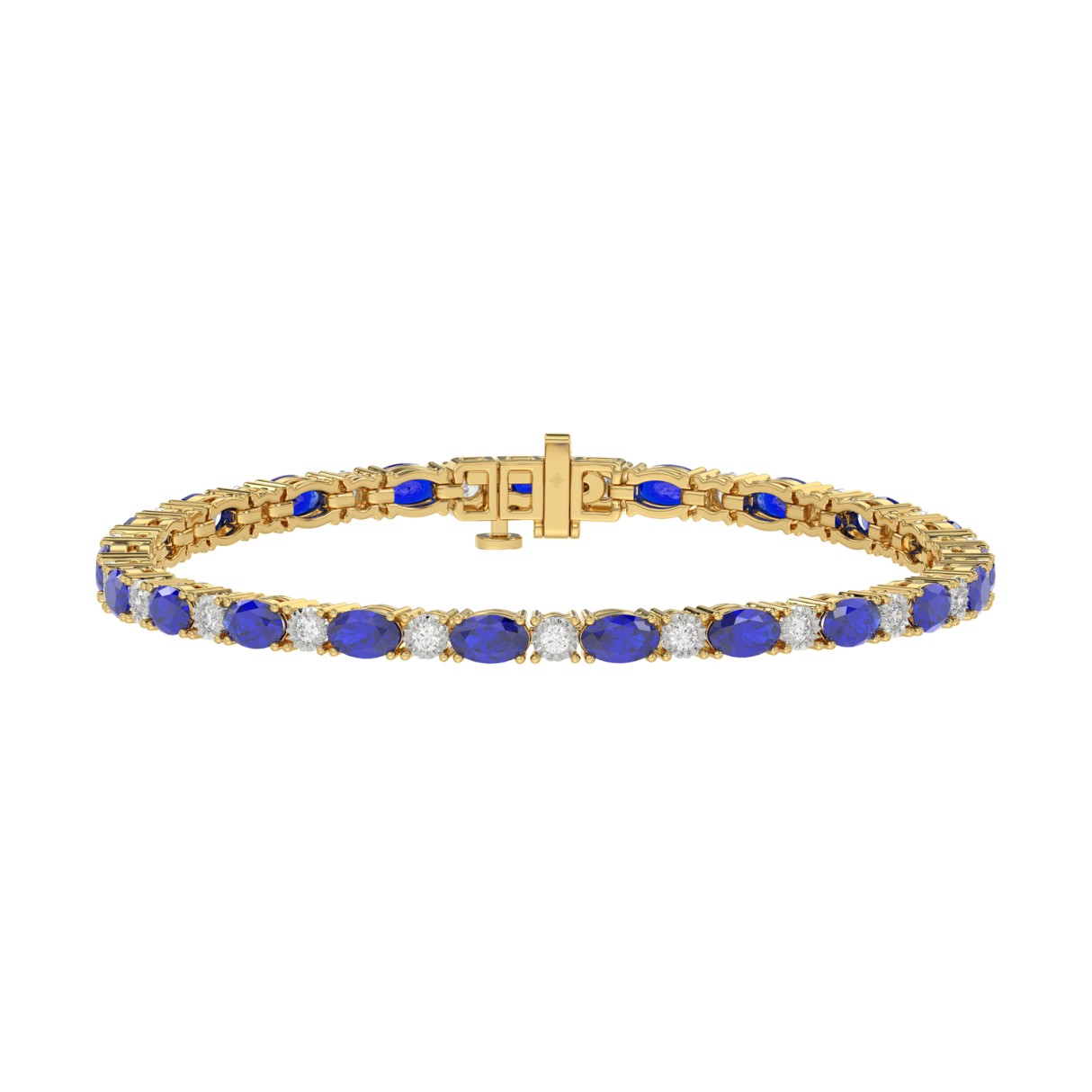 14K YELLOW GOLD 6 7/8CT ROUND/OVAL DIAMOND LADIES BRACELET (BLUE SAPPHIRE OVAL 6 1/6CT)