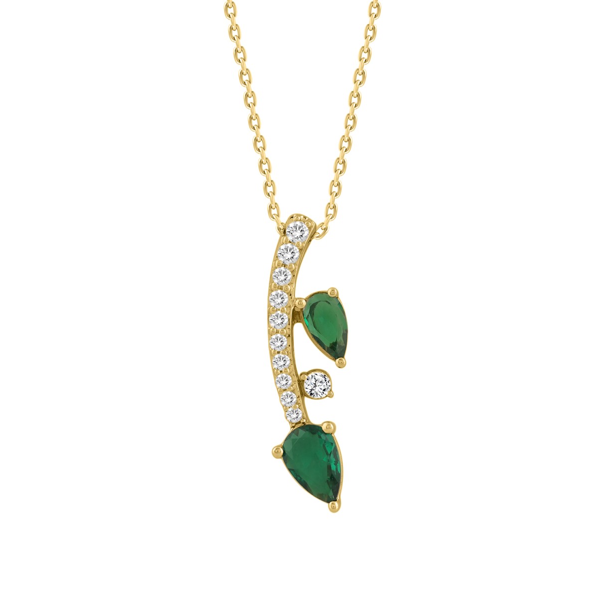 14K YELLOW GOLD 7/8CT ROUND/PEAR DIAMOND LADIES PENDANT WITH CHAIN (PEAR EMERALD 5/8CT)