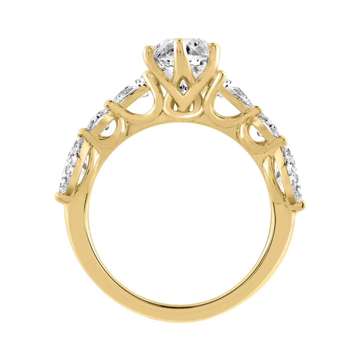 14K Yellow Gold Bridal Fashion Ring for Ladies 4CT Round & Marquise& Pear Cut Diamonds 3.00CT Marquise Center stone (Color F-G -Clarity VS1/V