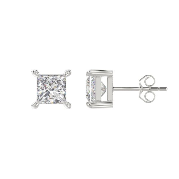 18K WHITE GOLD 2.00CT PRINCESS DIAMOND SOLITAIRE EARRINGS (TALON CLAWS LOCK)