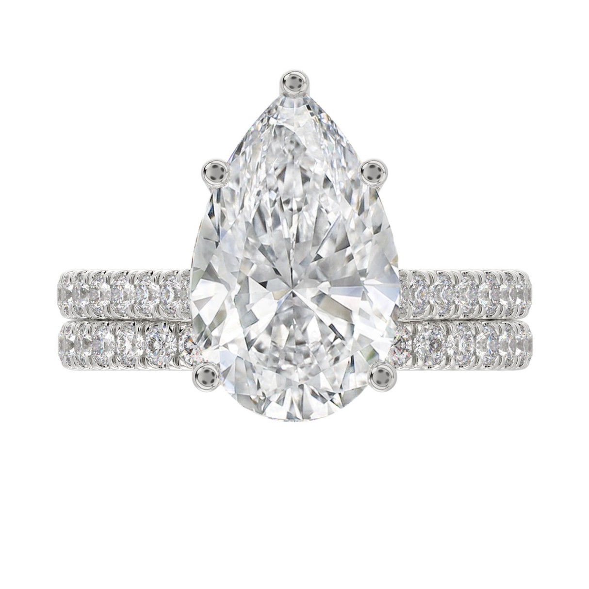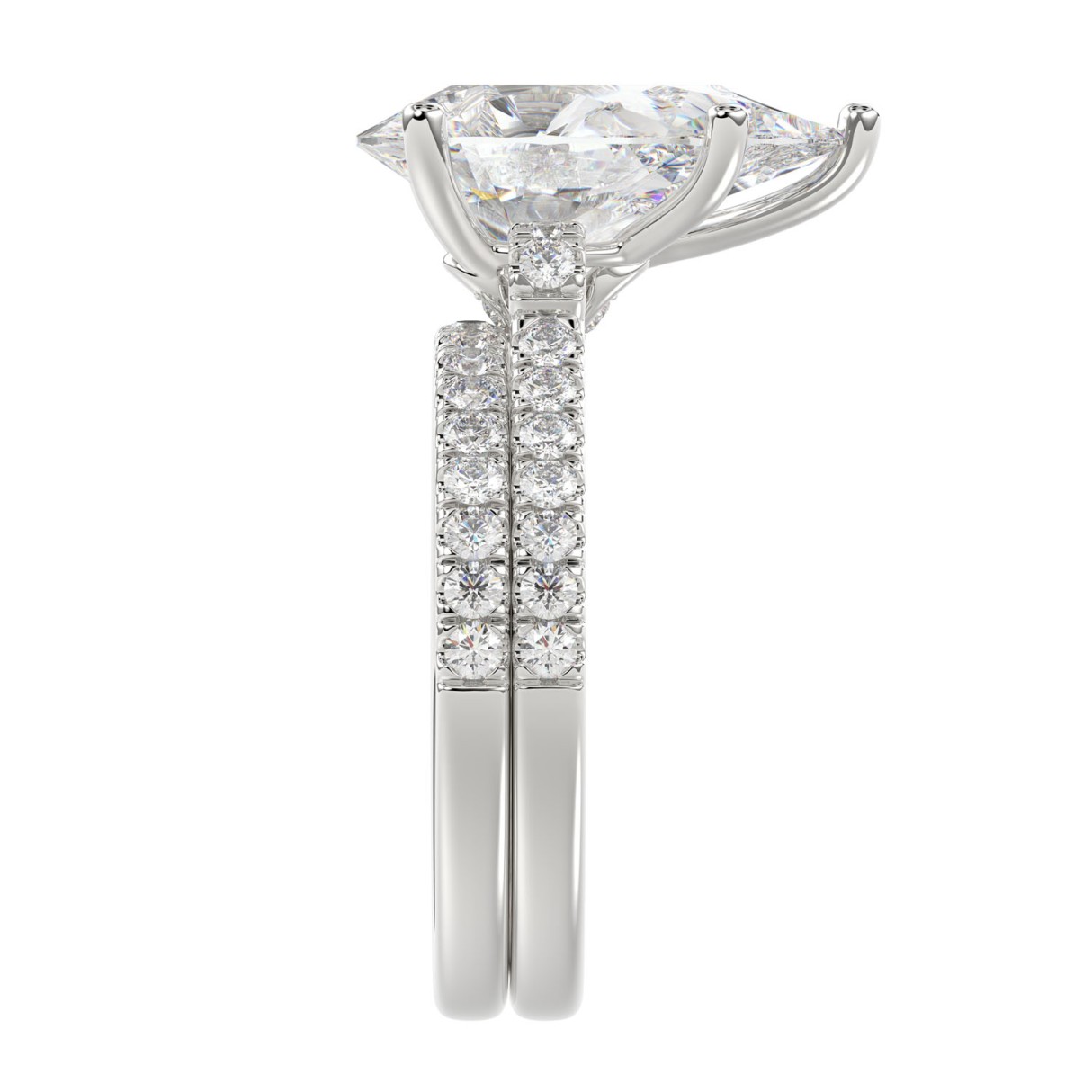 18K WHITE GOLD 4.00CT ROUND/PEAR DIAMOND LADIES BRIDAL SET (CENTER STONE PEAR DIAMOND 3 1/2CT)