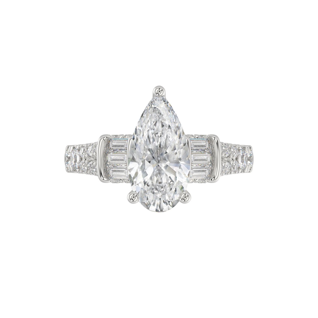 Home Rings 21K PLATINUM LADIES RING 2 3/4CT ROUND/PEAR/BAGUETTE DIAMOND (CENTER STONE PEAR DIAMOND 2CT)