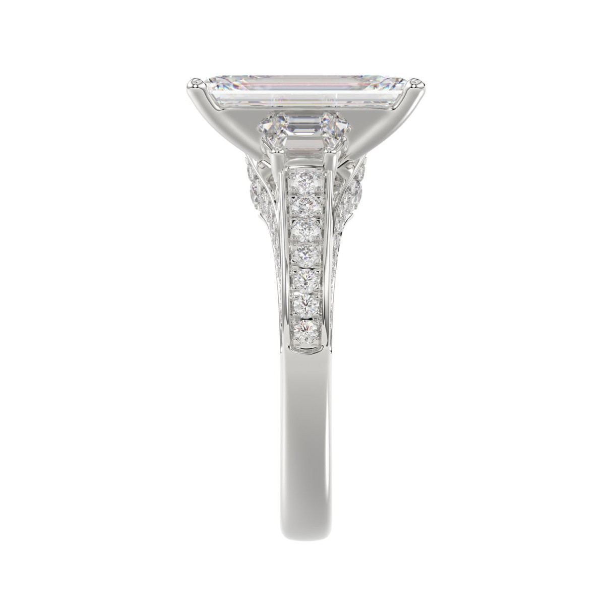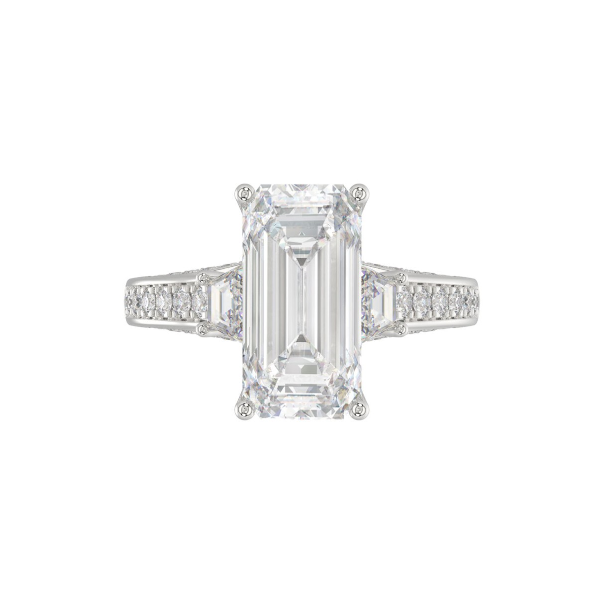 Home Rings 21K PLATINUM LADIES RING WITH 4.00CT ROUND/EMERALD/BAGUETTE DIAMONDS (CENTER STONE EMERALD DIAMOND 3CT)