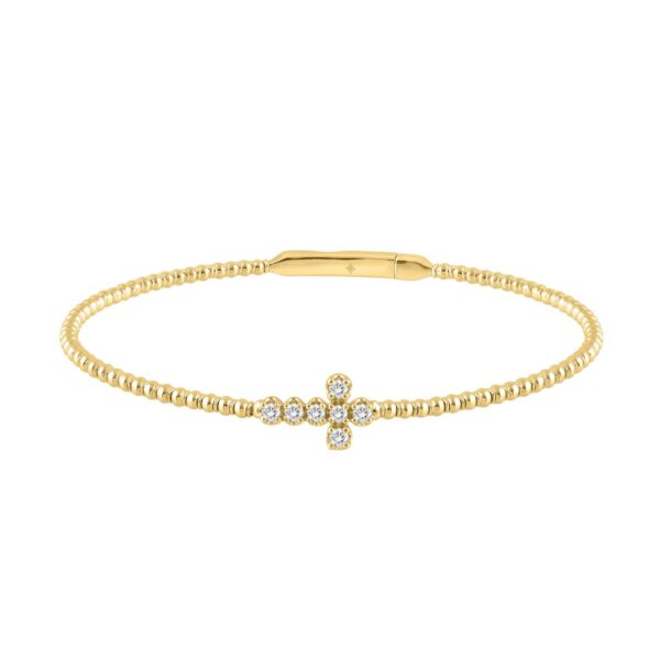 9K YELLOW GOLD 1/6CT ROUND DIAMOND LADIES BANGLE