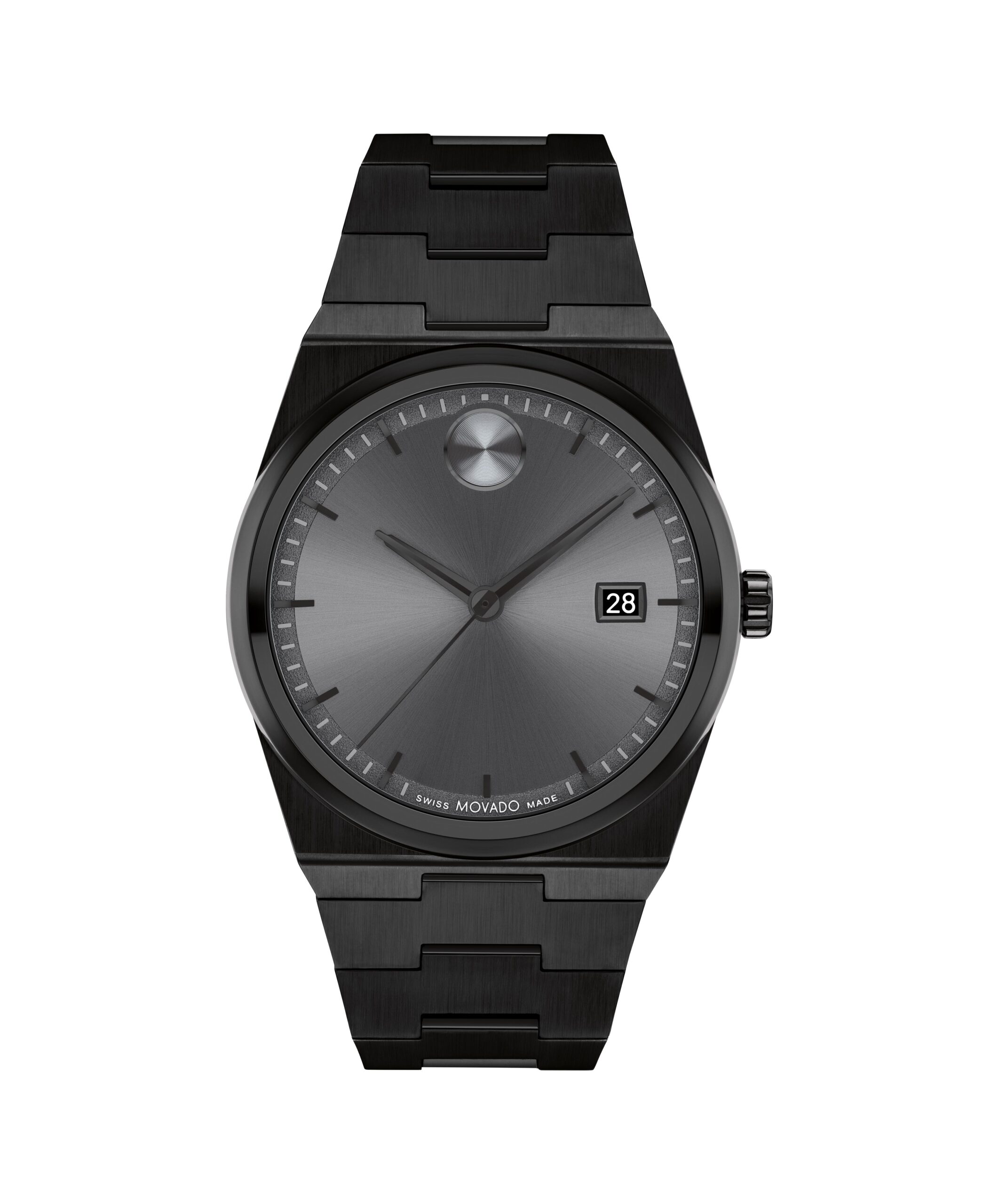 This 40mm watch features a gunmetal sunray dial, black hands, and our signature dot at 12 o’clock.