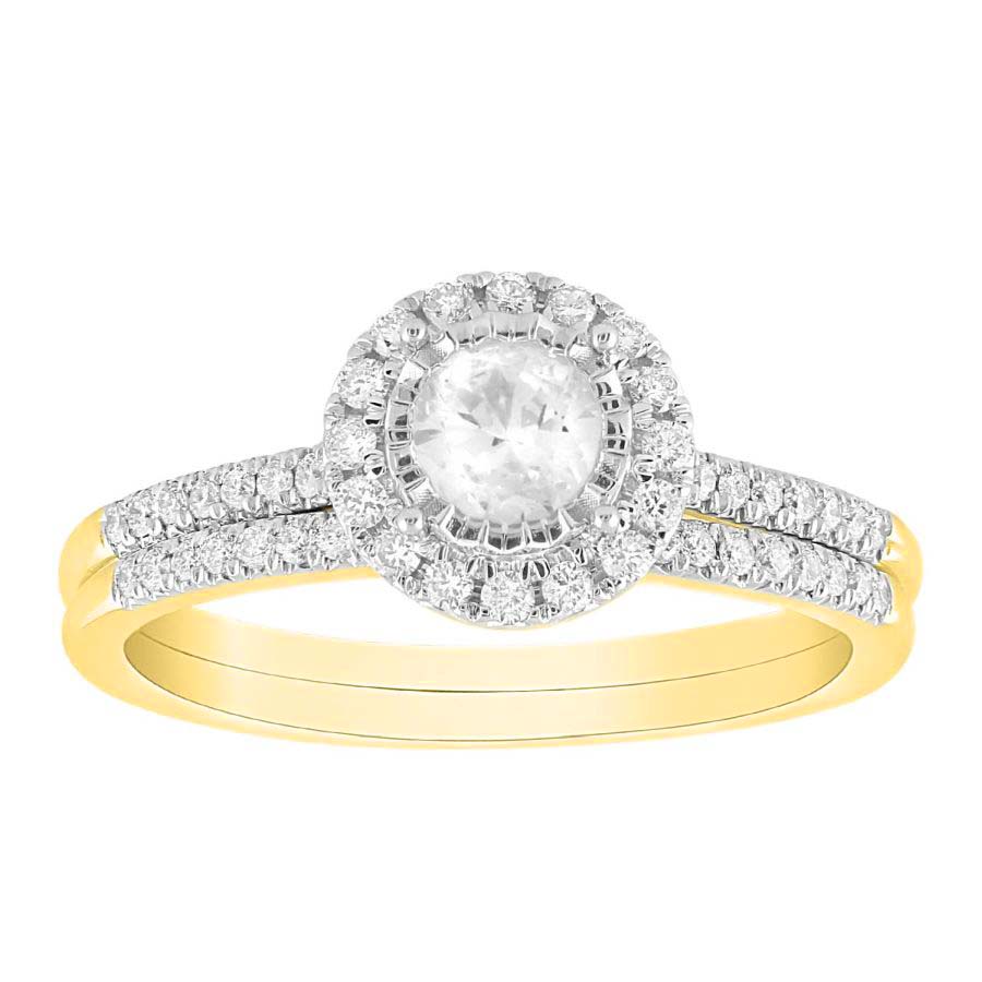 BRIDAL RING SET 0.60CT ROUND DIAMOND 14K YELLOW GOLD