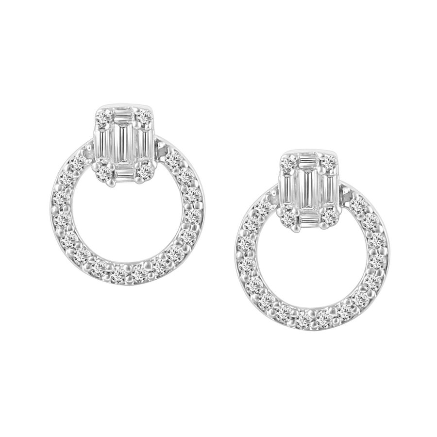 EARRINGS 0.25CT ROUND/BAGUETTE DIAMOND 10K WHITE GOLD