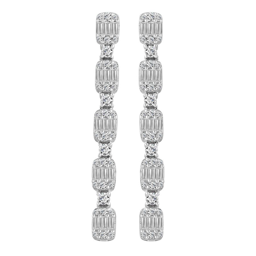 EARRINGS 1.00CT ROUND/BAGUETTE DIAMOND 10K WHITE GOLD