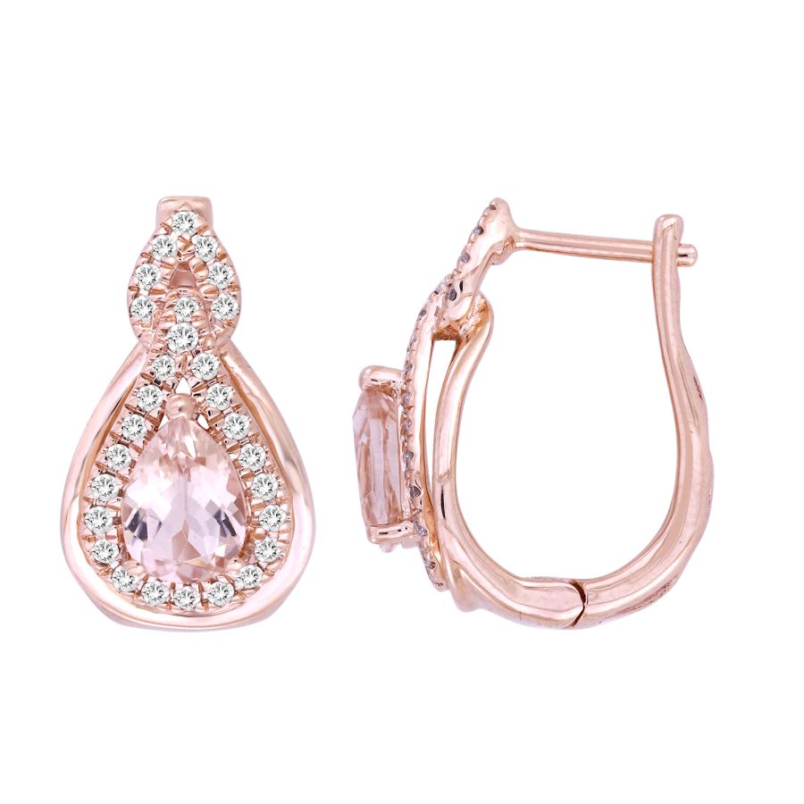 EARRINGS 1.65CT ROUND/PEAR DIAMOND 14K MORGANITE STONE ROSE GOLD