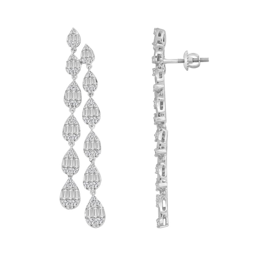 EARRINGS 2.00CT ROUND/BAGUETTE DIAMOND 14K WHITE GOLD