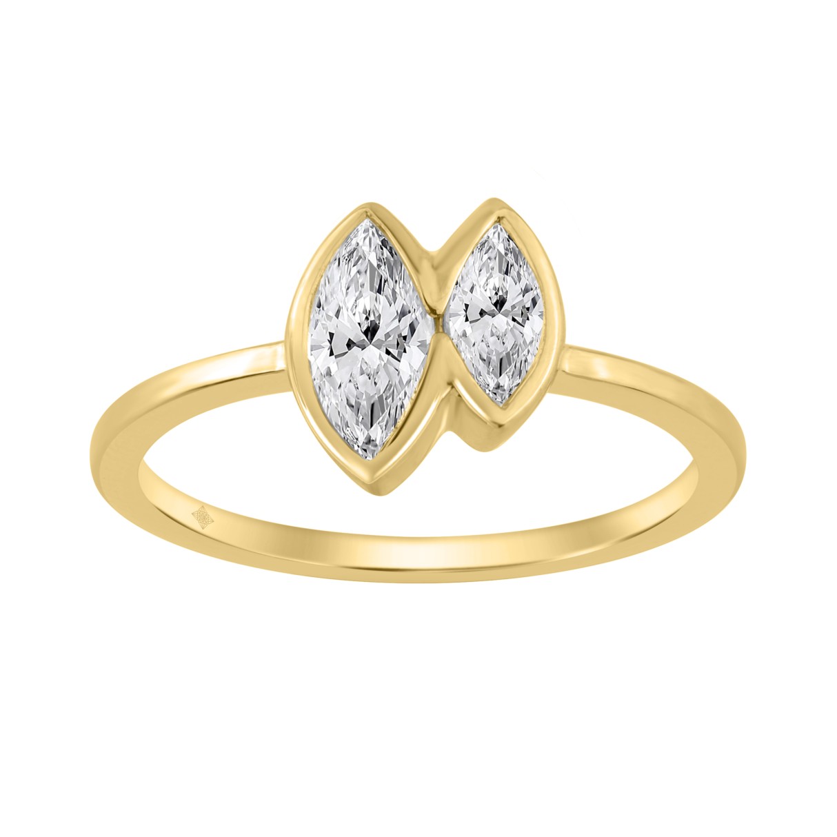 Elegant ColleCTions Linked Hearts Ladies Ring 10K Yellow Gold 3/4CT Marquise Lab Grown Diamond (Color F-G -Clarity VS1/VS2)
