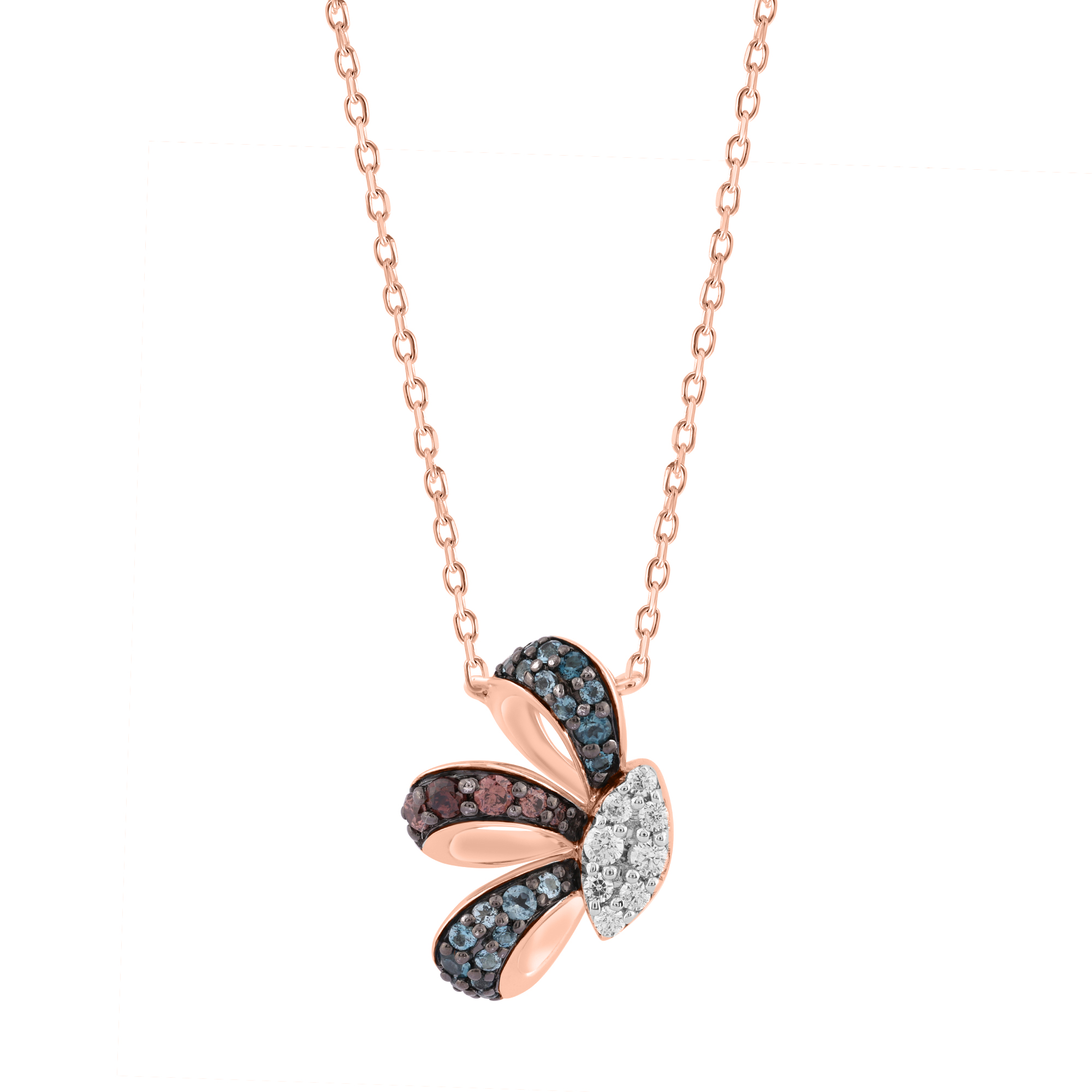 Home Pendants/charms Elegant Ladies 0.33Ct Round Blue & Dark Brown Diamond Fashion Pendant With Chain – 14K Rose Gold