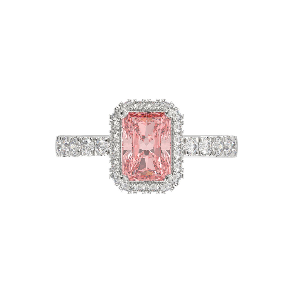Home Rings ETERNAL BLUSH COLLECTION 14K WHITE GOLD 1.00CT ROUND/RADIANT DIAMOND LADIES RING (CENTER STONE PINK RADIANT DIAMOND 3.00CT)