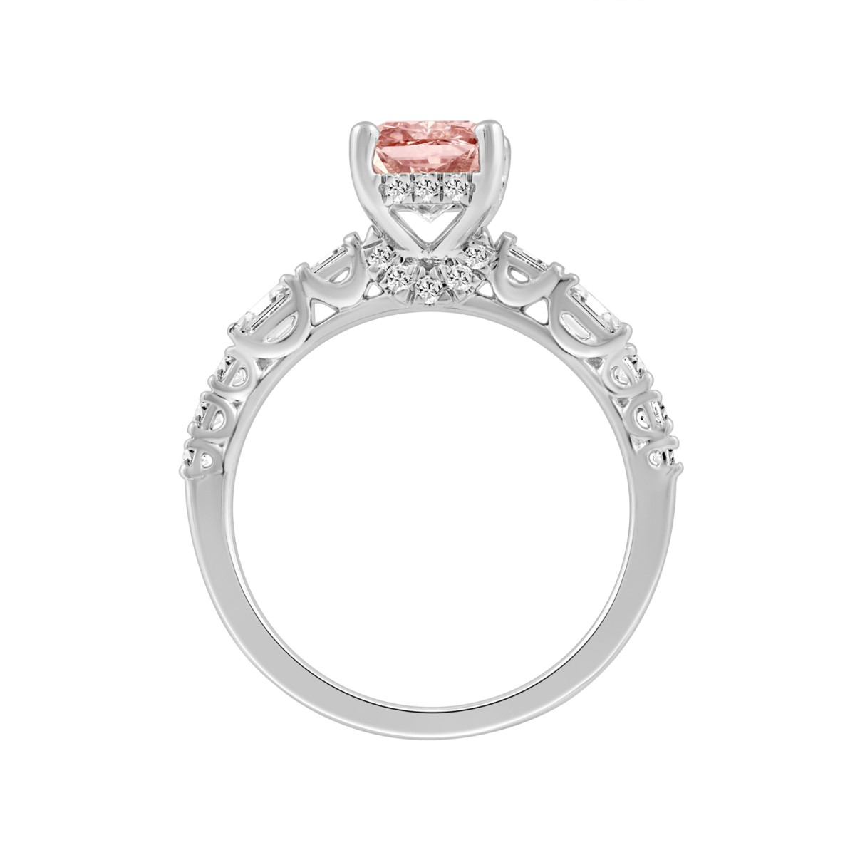 ETERNAL BLUSH COLLECTION 14K WHITE GOLD 2 3/4CT PINK CUSHION/TRAPEZOID DIAMOND LADIES RING (CENTER STONE PINK CUSHION DIAMOND 2CT) $4,679.99