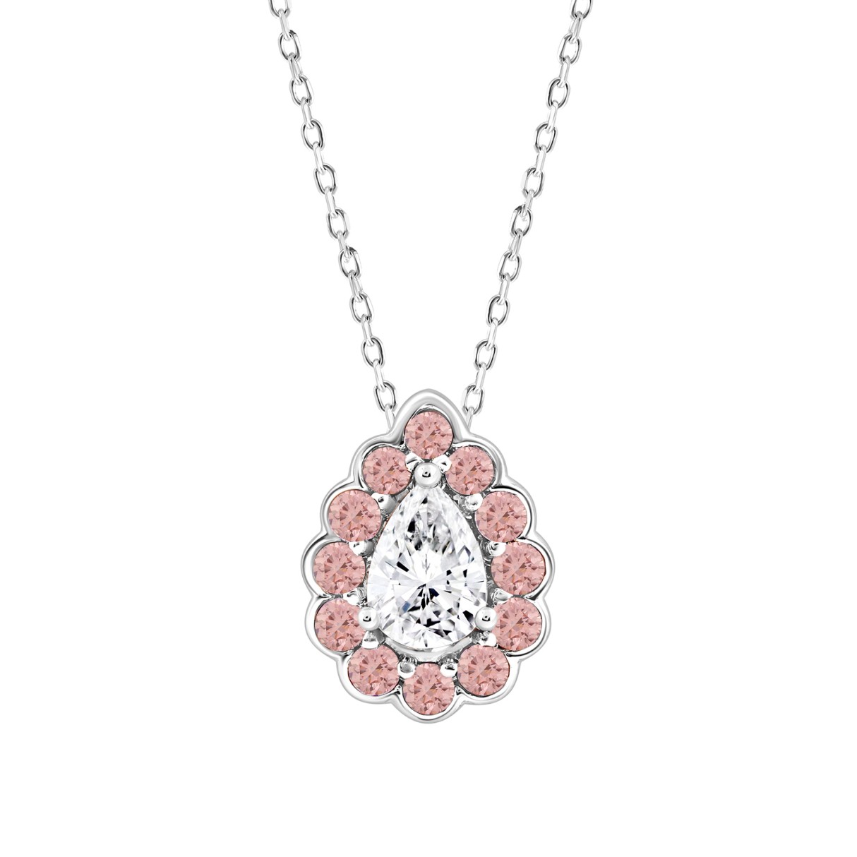 Home Collections ETERNAL BLUSH COLLECTION LADIES PENDANT 1 1/4CT PINK ROUND DIAMOND/PEAR DIAMOND 14K WHITE GOLD WITH CHAIN (CENTER STONE PEAR DIAMOND 3/4CT)