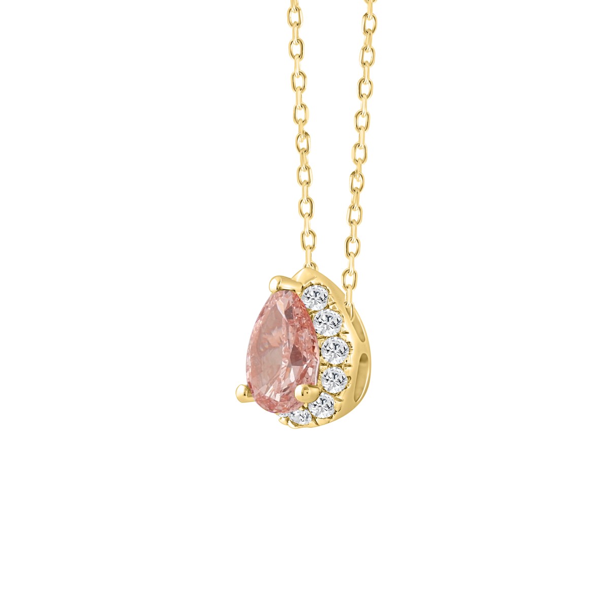 ETERNAL BLUSH COLLECTION LADIES PENDANT 1 1/4CT ROUND/PEAR DIAMOND 14K YELLOW GOLD WITH CHAIN (CENTER STONE PINK PEAR DIAMOND 1CT)